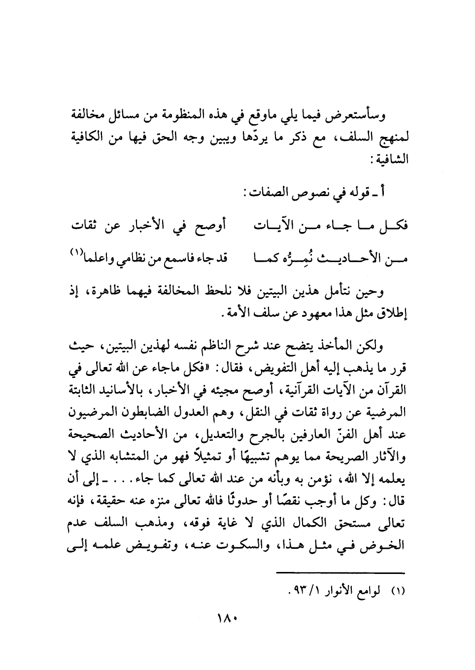 (¬١) لوامع الأنوار ١/ ٩٣.