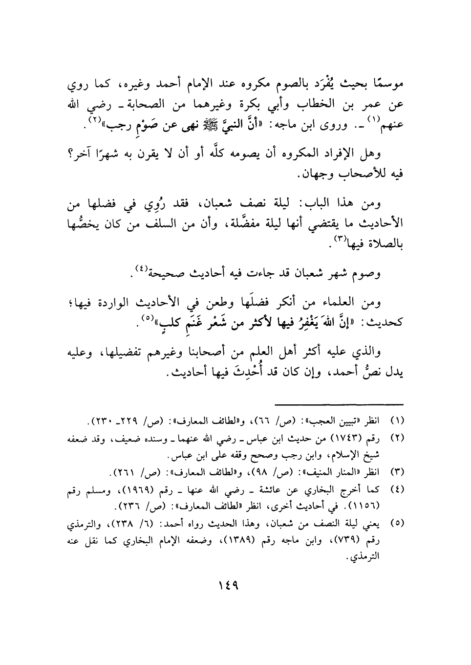 (¬١) انظر "تبيين العجب": (ص/ ٦٦)، و "لطائف المعارف": (ص/ ٢٢٩ - ٢٣٠).