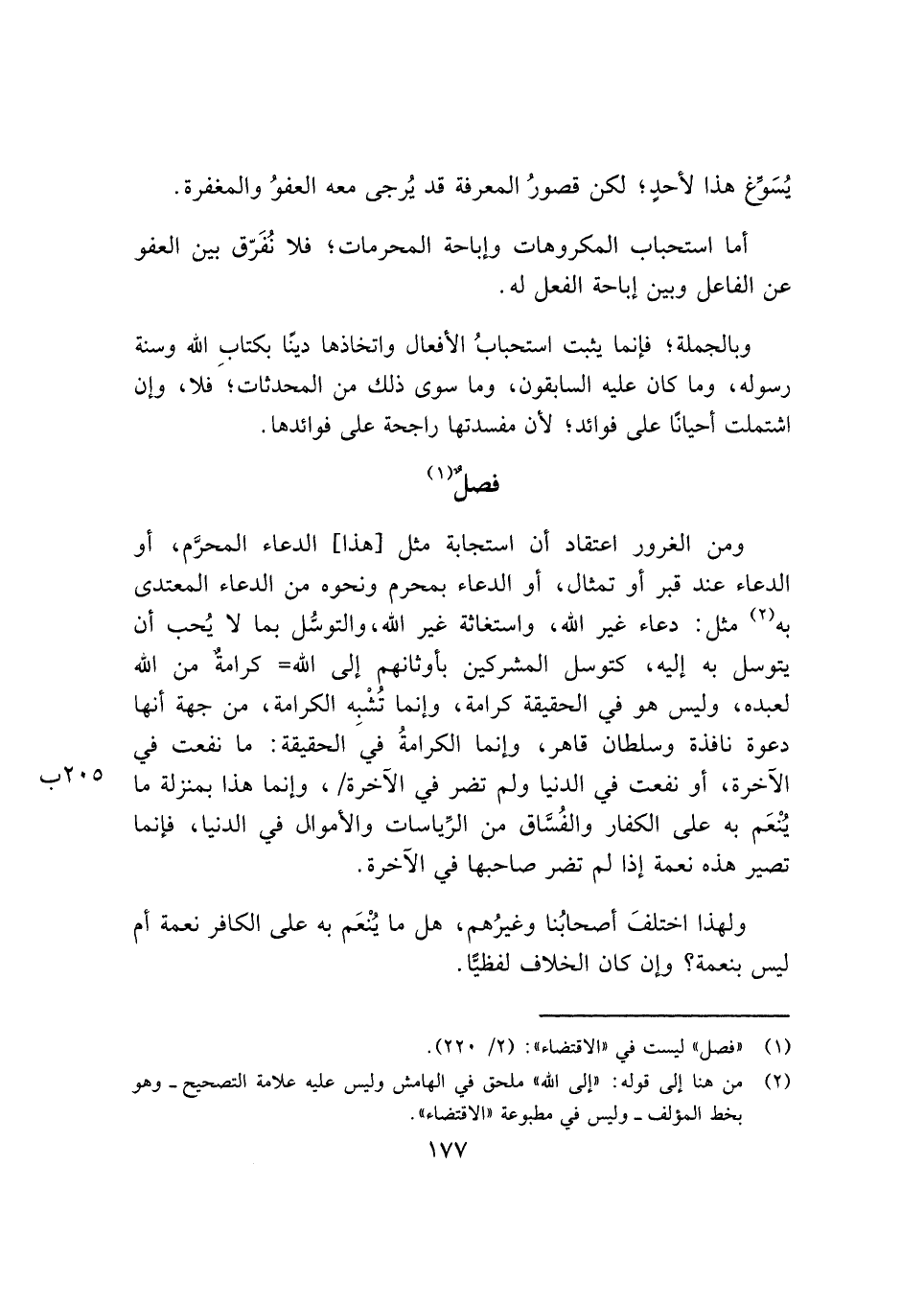 (¬٢) من هنا إلى قوله: "إلى الله" ملحق في الهامش وليس عليه علامة التصحيح -وهو بخط المؤلف- وليس في مطبوعة "الاقتضاء".
