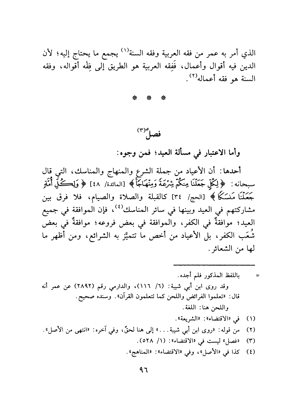 (¬٣) "فصل" ليست في "الاقتضاء": (١/ ٥٢٨).