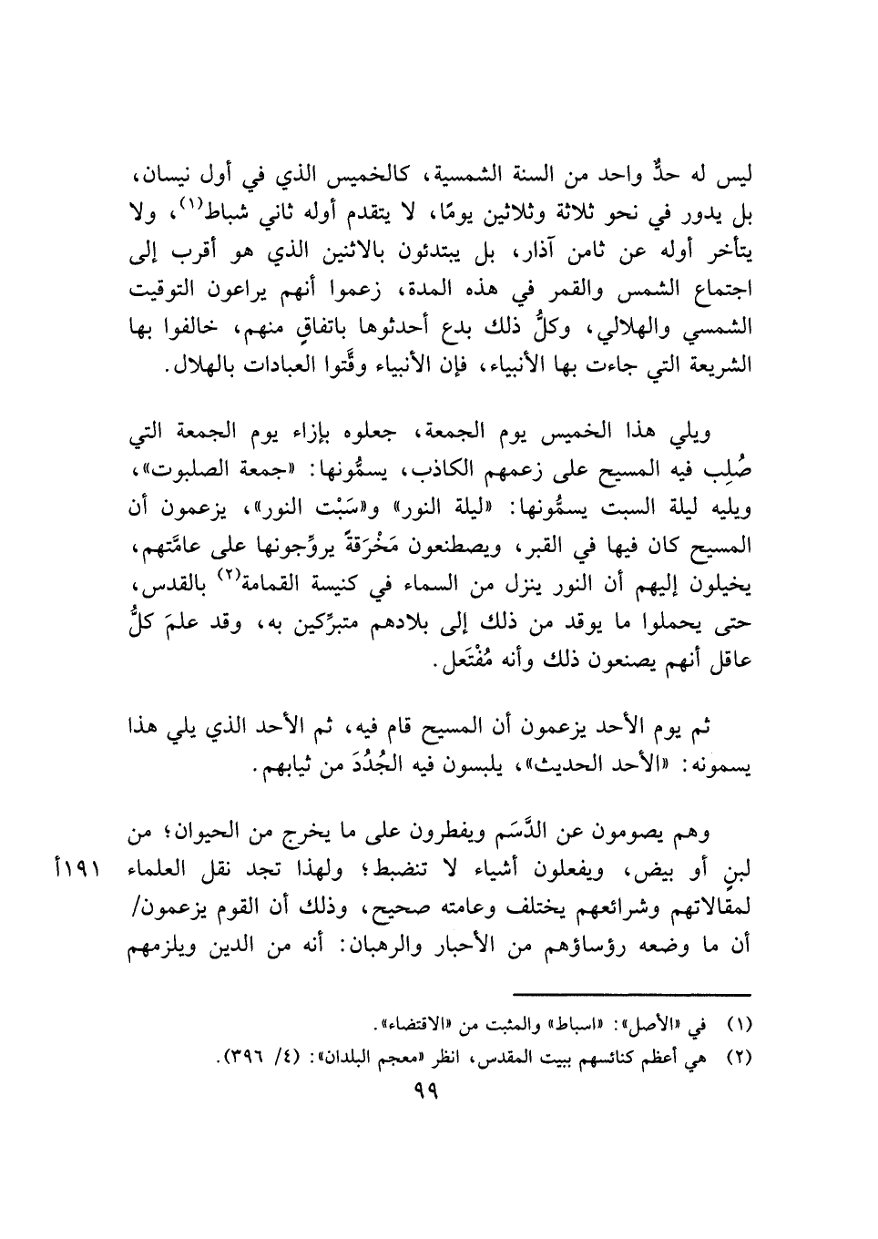 ثم يوم الأحد يزعمون أن المسيح قام فيه، ثم الأحد الذي يلي هذا يسمونه: "الأحد الحديث"، يلبسون فيه الجُدُدَ من ثيابهم.