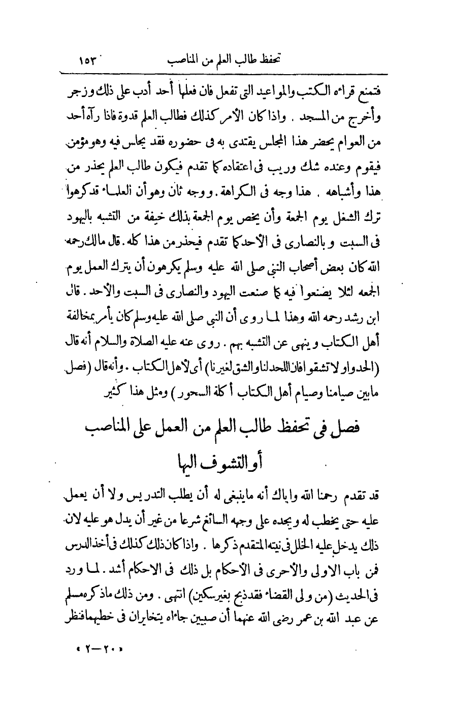 [فَصْلٌ فِي تَحَفُّظِ طَالِبِ الْعِلْمِ مِنْ الْعَمَلِ عَلَى الْمَنَاصِبِ]