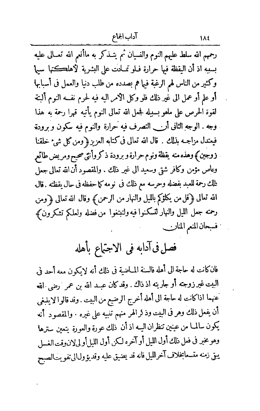 فَصْلٌ فِي آدَابّهِ فِي الِاجْتِمَاعِ بِأَهْلِهِ