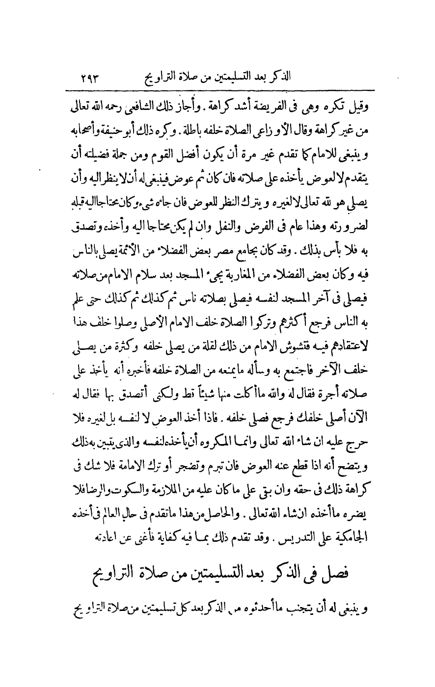 [فَصْلٌ فِي الذِّكْرِ بَعْدَ التَّسْلِيمَتَيْنِ مِنْ صَلَاةِ التَّرَاوِيحِ]