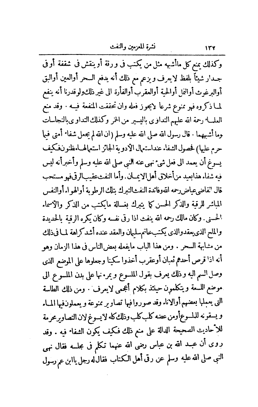 وَقَدْ رُوِيَ أَنَّ عَبْدَ اللَّهِ بْنَ عَبَّاسٍ - رَضِيَ اللَّهُ عَنْهُمَا - تَكَلَّمَ فِي مَجْلِسِهِ فَقَالَ: «نَهَى النَّبِيُّ - صَلَّى اللَّهُ عَلَيْهِ وَسَلَّمَ - عَنْ رُقَى أَهْلِ الْكِتَابِ فَقَالَ لَهُ رَجُلٌ: يَا ابْنَ عَمِّ رَسُولِ