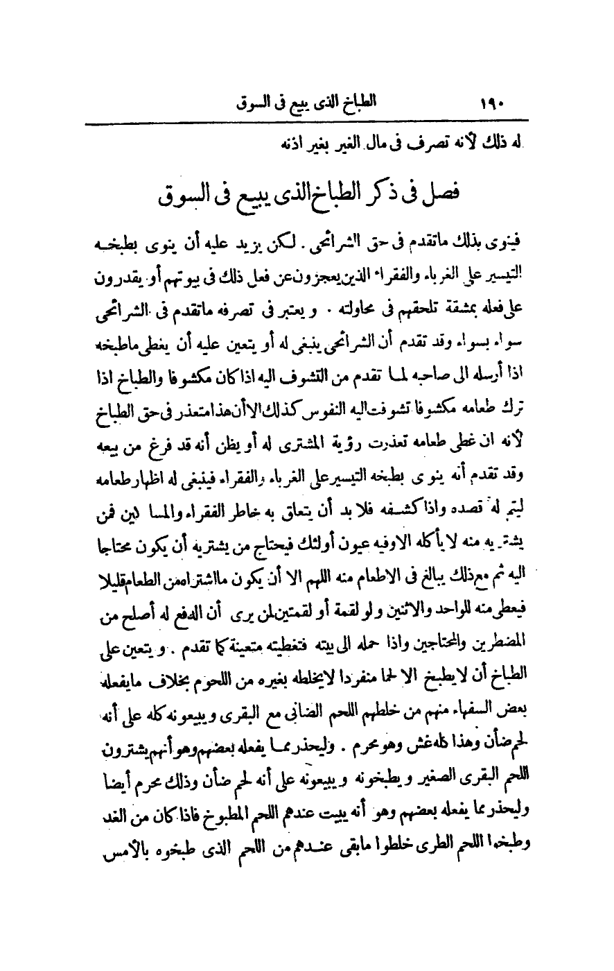 [فَصْلٌ فِي ذِكْرِ الطَّبَّاخِ الَّذِي يَبِيعُ فِي السُّوقِ]