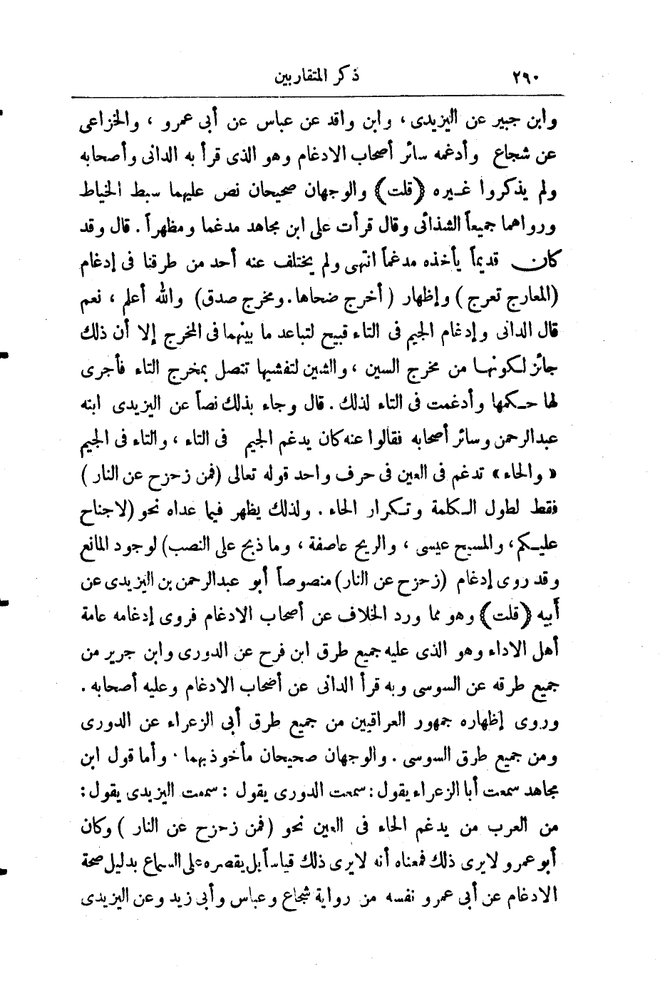 وَابْنُ جُبَيْرٍ عَنِ الْيَزِيدِيِّ،، وَابْنُ وَاقِدٍ، عَنْ عَبَّاسٍ، عَنْ أَبِي عَمْرٍو وَالْخُزَاعِيُّ، عَنْ شُجَاعٍ، وَأَدْغَمَهُ سَائِرُ أَصْحَابِ الْإِدْغَامِ، وَهُوَ الَّذِي قَرَأَ بِهِ الدَّانِيُّ وَأَصْحَابُهُ وَلَمْ يَذْكُرُوا غَيْرَهُ.