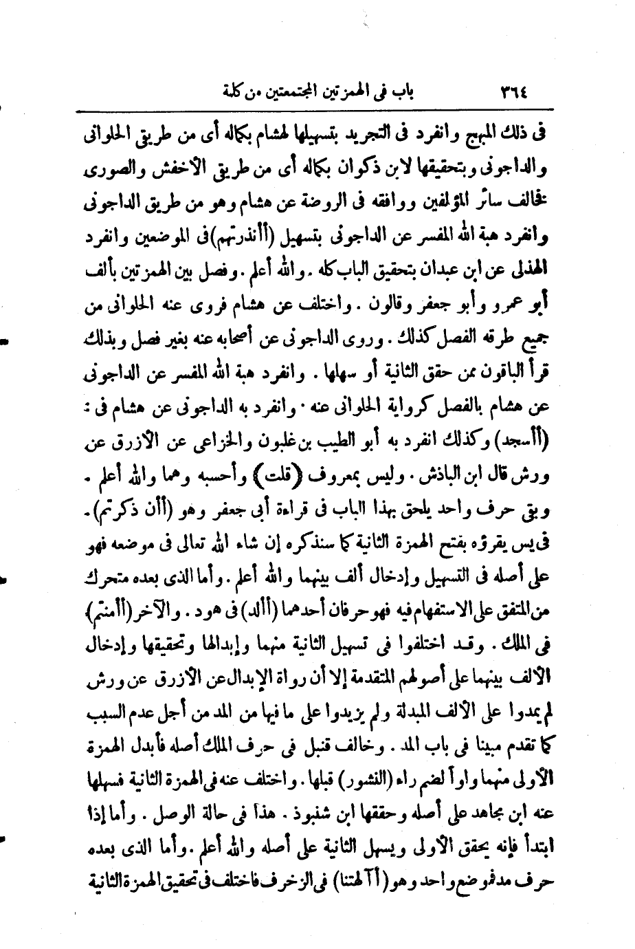 فِي ذَلِكَ " الْمُبْهِجُ "، وَانْفَرَدَ فِي " التَّجْرِيدِ " بِتَسْهِيلِهَا لِهِشَامٍ بِكَمَالِهِ، أَيْ: مِنْ طَرِيقِ الْحُلْوَانِيِّ وَالدَّاجُونِيِّ، وَبِتَحْقِيقِهَا لِابْنِ ذَكْوَانَ بِكَمَالِهِ، أَيْ: مِنْ طَرِيقِ الْأَخْفَشِ وَالصُّورِيِّ، فَخَالَفَ سَائِرَ الْمُؤَلِّفِينَ، وَوَافَقَهُ فِي " الرَّوْضَةِ "، عَنْ هِشَامٍ، وَهُوَ مِنْ طَرِيقِ الدَّاجُونِيِّ، وَانْفَرَدَ هِبَةُ اللَّهِ الْمُفَسِّرُ عَنِ الدَّاجُونِيِّ بِتَسْهِيلِ (أَأَنْذَرْتَهُمْ) فِي الْمَوْضِعَيْنِ، وَانْفَرَدَ الْهُذَلِيُّ عَنِ ابْنِ عَبْدَانَ بِتَحْقِيقِ الْبَابِ كُلِّهِ، وَاللَّهُ أَعْلَمُ.