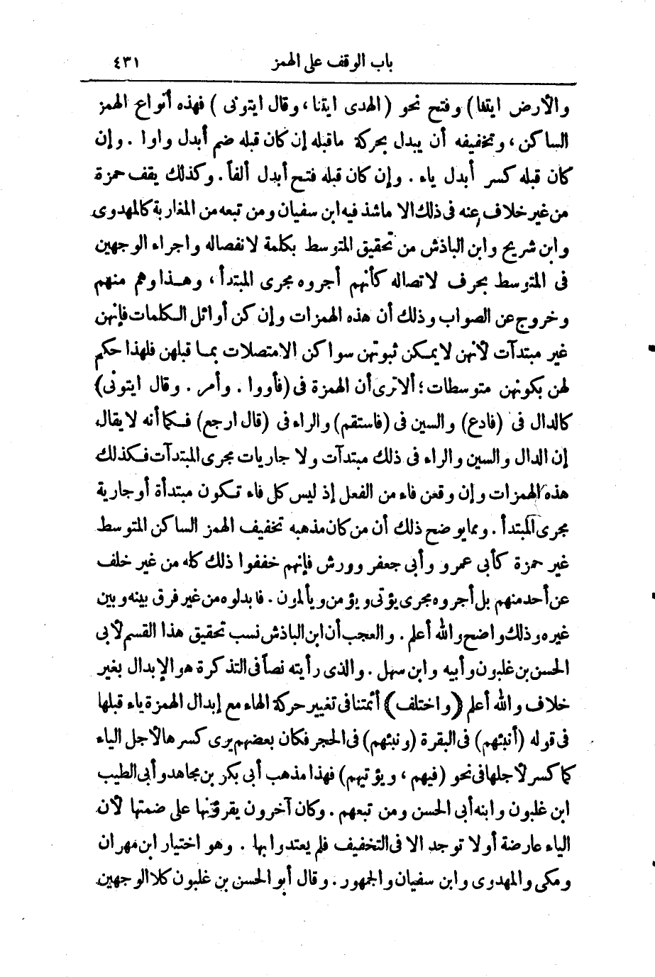 وَالْعَجَبُ أَنَّ ابْنَ الْبَاذِشِ نَسَبَ تَحْقِيقَ هَذَا الْقِسْمِ لِأَبِي الْحَسَنِ بْنِ غَلْبُونَ وَأَبِيهِ وَابْنِ سَهْلٍ، وَالَّذِي رَأَيْتُهُ نَصًّا فِي " التَّذْكِرَةِ "، هُوَ الْإِبْدَالُ بِغَيْرِ خِلَافٍ، وَاللَّهُ أَعْلَمُ.