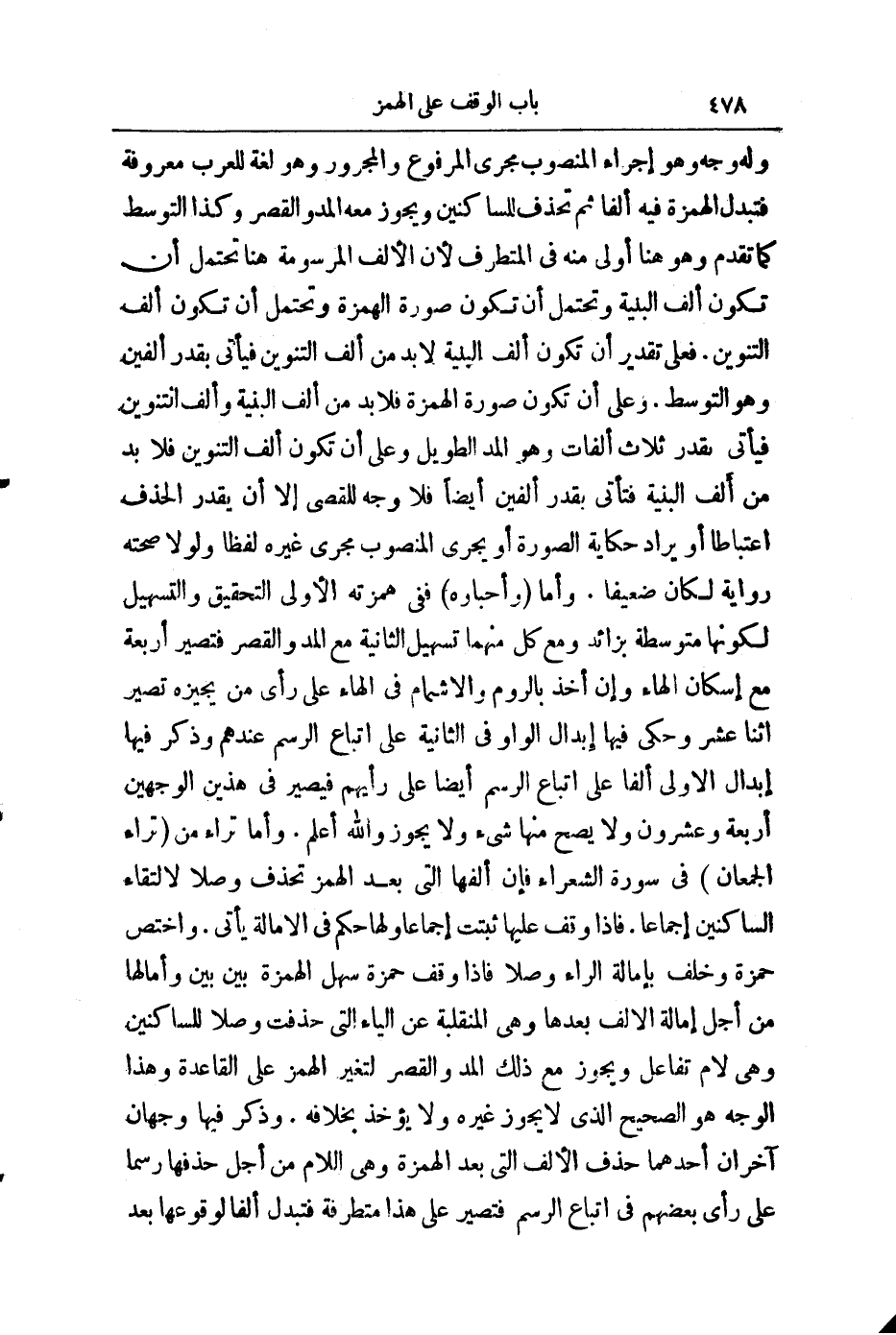 وَلَهُ وَجْهٌ، وَهُوَ إِجْرَاءُ الْمَنْصُوبِ مَجْرَى الْمَرْفُوعِ وَالْمَجْرُورِ، وَهُوَ لُغَةٌ لِلْعَرَبِ مَعْرُوفَةٌ، فَتُبْدَلُ الْهَمْزَةُ فِيهِ أَلِفًا، ثُمَّ تُحْذَفُ لِلسَّاكِنَيْنِ، وَيَجُوزُ مَعَهُ الْمَدُّ وَالْقَصْرُ، وَكَذَا التَّوَسُّطُ كَمَا تَقَدَّمَ، وَهُوَ هُنَا أَوْلَى مِنْهُ فِي الْمُتَطَرِّفِ ; لِأَنَّ الْأَلِفَ الْمَرْسُومَةَ هُنَا تَحْتَمِلُ أَنْ تَكُونَ أَلِفَ الْبِنْيَةِ، وَتَحْتَمِلُ أَنْ تَكُونَ صُورَةَ الْهَمْزَةِ، وَتَحْتَمِلُ أَنْ تَكُونَ أَلِفَ التَّنْوِينِ، فَعَلَى تَقْدِيرِ أَنْ تَكُونَ أَلِفَ الْبِنْيَةِ لَا بُدَّ مِنْ أَلِفِ التَّنْوِينِ، فَيَأْتِي بِقَدْرِ أَلِفَيْنِ وَهُوَ التَّوَسُّطُ، وَعَلَى أَنْ تَكُونَ صُورَةَ الْهَمْزَةِ فَلَا بُدَّ مِنْ أَلِفِ الْبِنْيَةِ وَأَلِفِ التَّنْوِينِ، فَيَأْتِي بِقَدْرِ ثَلَاثِ أَلِفَاتٍ، وَهُوَ الْمَدُّ الطَّوِيلُ، وَعَلَى أَنْ تَكُونَ أَلِفَ التَّنْوِينِ فَلَا بُدَّ مِنْ أَلِفِ الْبِنْيَةِ، فَتَأْتِي بِقَدْرِ أَلِفَيْنِ أَيْضًا، فَلَا وَجْهَ لِلْقَصْرِ، إِلَّا أَنْ يُقَدَّرَ الْحَذْفُ اعْتِبَاطًا، أَوْ يُرَادَ حِكَايَةُ الصُّورَةِ، أَوْ يَجْرِي الْمَنْصُوبُ مَجْرَى غَيْرِهِ لَفْظًا، وَلَوْلَا صِحَّتُهُ رِوَايَةً لَكَانَ ضَعِيفًا، وَأَمَّا (وَأَحِبَّاوُهُ) فَفِي هَمْزَتِهِ الْأُولَى التَّحْقِيقُ وَالتَّسْهِيلُ؛ لِكَوْنِهَا مُتَوَسِّطَةً بِزَائِدٍ، وَمَعَ كُلٍّ مِنْهُمَا تَسْهِيلُ الثَّانِيَةِ مَعَ الْمَدِّ وَالْقَصْرِ، فَتَصِيرُ أَرْبَعَةً مَعَ إِسْكَانِ الْهَاءِ، وَإِنْ أُخِذَ بِالرَّوْمِ وَالْإِشْمَامِ فِي الْهَاءِ عَلَى رَأْيِ مَنْ يُجِيزُهُ، تَصِيرُ اثْنَا عَشَرَ، وَحُكِيَ فِيهَا إِبْدَالُ الْوَاوِ فِي الثَّانِيَةِ عَلَى اتِّبَاعِ الرَّسْمِ عِنْدَهُمْ، وَذُكِرَ فِيهَا إِبْدَالُ الْأُولَى أَلِفًا عَلَى اتِّبَاعِ الرَّسْمِ أَيْضًا عَلَى رَأْيِهِمْ، فَيَصِيرُ فِي هَذَيْنِ الْوَجْهَيْنِ أَرْبَعَةٌ وَعِشْرُونَ، وَلَا يَصِحُّ مِنْهَا شَيْءٌ وَلَا يَجُوزُ، وَاللَّهُ أَعْلَمُ.