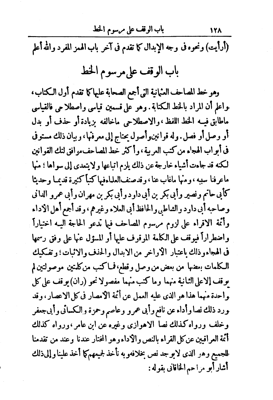 بَابُ الْوَقْفُ عَلَى مَرْسُومِ الْخَطِّ