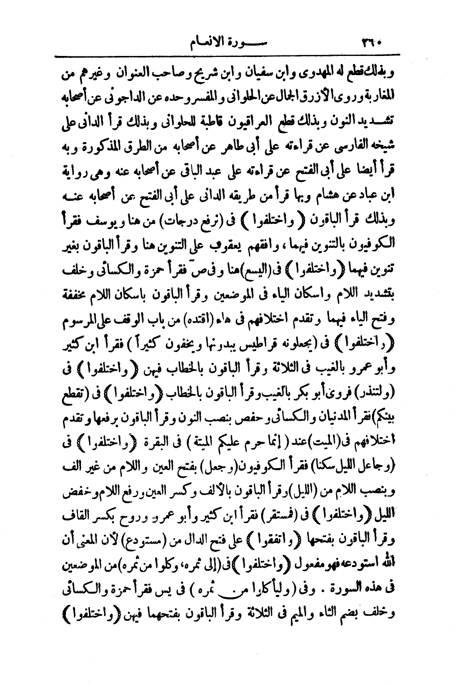(وَاخْتَلَفُوا) فِي: الْيَسَعَ هُنَا، وَفِي ص فَقَرَأَ حَمْزَةُ وَالْكِسَائِيُّ، وَخَلَفٌ بِتَشْدِيدِ اللَّامِ، وَإِسْكَانِ الْيَاءِ فِي الْمَوْضِعَيْنِ، وَقَرَأَ الْبَاقُونَ بِإِسْكَانِ اللَّامِ مُخَفَّفَةً وَفَتْحِ الْيَاءِ فِيهِمَا، وَتَقَدَّمَ اخْتِلَافُهُمْ فِي هَاءِ اقْتَدِهِ مِنْ بَابِ الْوَقْفِ عَلَى الْمَرْسُومِ.