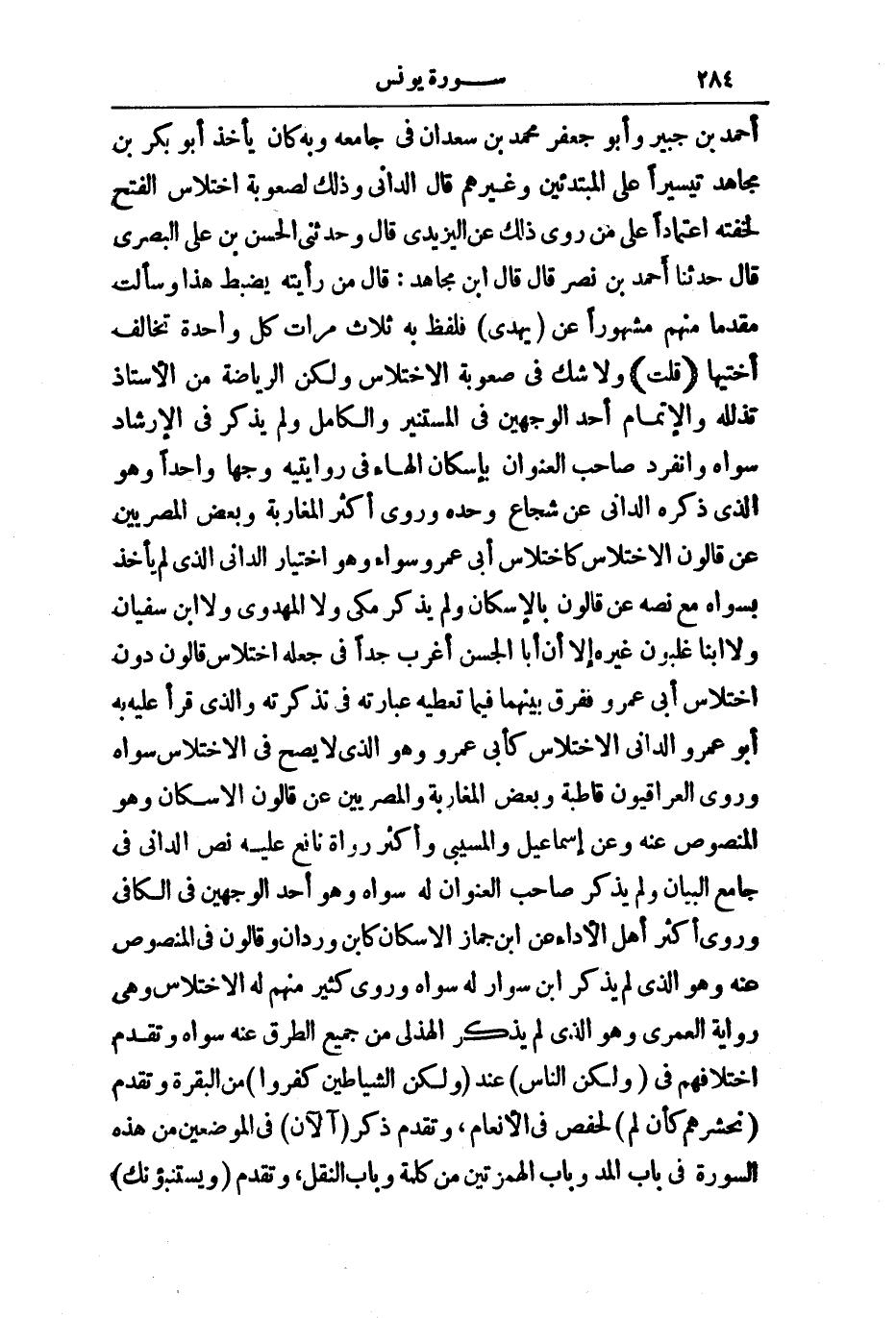 أَحْمَدُ بْنُ جُبَيْرٍ وَأَبُو جَعْفَرٍ مُحَمَّدُ بْنُ سَعْدَانَ فِي جَامِعِهِ وَبِهِ كَانَ يَأْخُذُ أَبُو بَكْرِ بْنُ مُجَاهِدٍ تَيْسِيرًا عَلَى الْمُبْتَدِئِينَ، وَغَيْرِهِمْ. قَالَ الدَّانِيُّ: وَذَلِكَ لِصُعُوبَةِ اخْتِلَاسِ الْفَتْحِ لِخِفَّتِهِ اعْتِمَادًا عَلَى مَنْ رَوَى ذَلِكَ عَنِ الْيَزِيدِيِّ قَالَ: وَحَدَّثَنِي الْحَسَنُ بْنُ عَلِيٍّ الْبَصْرِيُّ قَالَ: حَدَّثَنَا أَحْمَدُ بْنُ نَصْرٍ قَالَ: قَالَ ابْنُ مُجَاهِدٍ: قَالَ: مَنْ رَأَيْتُهُ يَضْبِطُ هَذَا، وَسَأَلْتُ مُقَدَّمًا مِنْهُمْ مَشْهُورًا عَنْ يَهْدِي، فَلَفَظَ بِهِ ثَلَاثَ مَرَّاتٍ كُلَّ وَاحِدَةٍ تُخَالِفُ أُخْتَيْهَا.