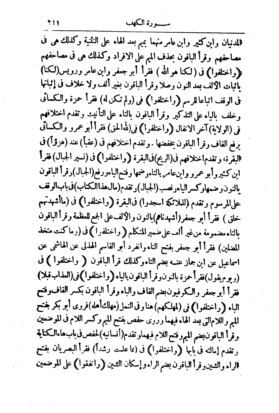 (وَاخْتَلَفُوا) فِي: وَلَمْ تَكُنْ لَهُ فَقَرَأَ حَمْزَةُ وَالْكِسَائِيُّ وَخَلَفٌ بِالْيَاءِ عَلَى التَّذْكِيرِ، وَقَرَأَ الْبَاقُونَ بِالتَّاءِ عَلَى التَّأْنِيثِ، وَتَقَدَّمَ اخْتِلَافُهُمْ فِي الْوَلَايَةُ آخِرَ الْأَنْفَالِ.