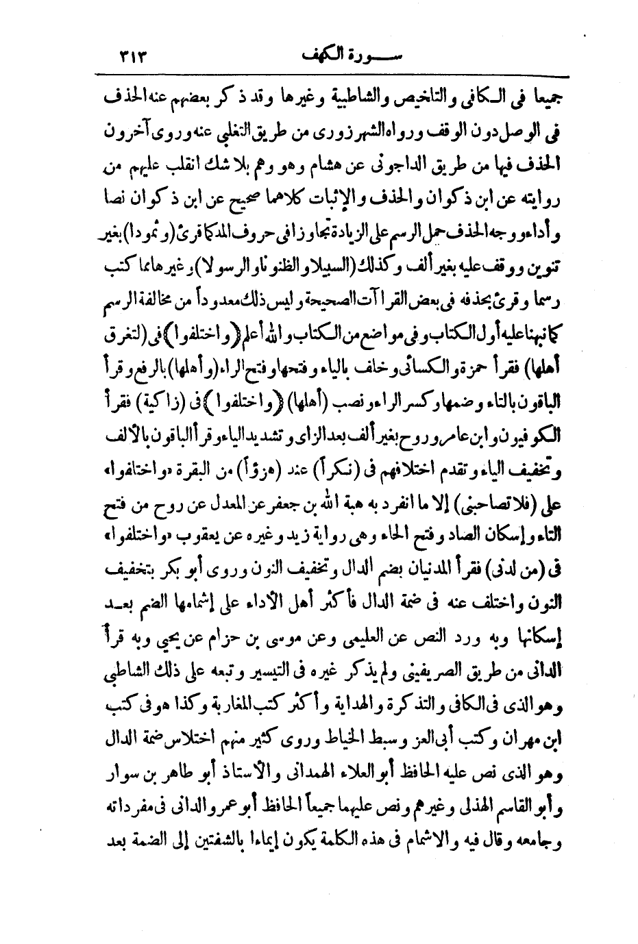 جَمِيعًا فِي الْكَافِي وَالتَّلْخِيصِ، وَالشَّاطِبِيَّةِ، وَغَيْرِهَا. وَقَدْ ذَكَرَ بَعْضُهُمْ عَنْهُ الْحَذْفَ فِي الْوَصْلِ دُونَ الْوَقْفِ، وَرَوَاهُ الشَّهْرُزُورِيُّ مِنْ طَرِيقِ التَّغْلِبِيِّ عَنْهُ، وَرَوَى آخَرُونَ الْحَذْفَ فِيهَا مِنْ طَرِيقِ الدَّاجُونِيِّ عَنْ هِشَامٍ، وَهُوَ وَهْمٌ بِلَا شَكٍّ انْقَلَبَ عَلَيْهِمْ مِنْ رِوَايَتِهِ عَنِ ابْنِ ذَكْوَانَ وَالْحَذْفُ وَالْإِثْبَاتُ كِلَاهُمَا صَحِيحٌ عَنِ ابْنِ ذَكْوَانَ نَصًّا وَأَدَاءً، وَوَجْهُ الْحَذْفِ حَمْلُ الرَّسْمِ عَلَى الزِّيَادَةِ تَجَاوُزًا فِي حُرُوفِ الْمَدِّ كَمَا قُرِئَ وَثَمُودَا بِغَيْرِ تَنْوِينٍ، وَوُقِفَ عَلَيْهِ بِغَيْرِ أَلِفٍ، وَكَذَلِكَ السَّبِيلَا وَالظُّنُونَا وَالرَّسُولَا، وَغَيْرُهَا. مِمَّا كُتِبَ رَسْمًا وَقُرِئَ بِحَذْفِهِ فِي بَعْضِ الْقِرَاءَاتِ الصَّحِيحَةِ، وَلَيْسَ ذَلِكَ مَعْدُودًا مِنْ مُخَالَفَةِ الرَّسْمِ كَمَا نَبَّهْنَا عَلَيْهِ أَوَّلَ الْكِتَابِ، وَفِي مَوَاضِعَ مِنَ الْكِتَابِ - وَاللَّهُ أَعْلَمُ -.