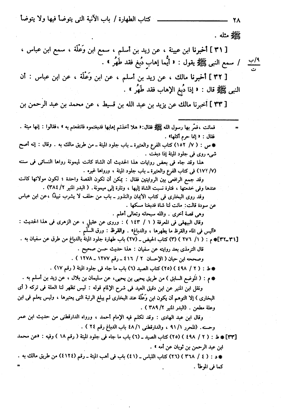 صلى الله عليه وسلم - مِثْلَهُ , أَخْبَرَنَا ابْنُ عُيَيْنَةَ عَنْ زَيْدِ بْنِ أَسْلَمَ سَمِعَ ابْنَ وَعْلَةَ سَمِعَ ابْنَ عَبَّاسٍ سَمِعَ النَّبِيَّ - صلى الله عليه وسلم - يَقُولُ { أَيُّمَا إهَابٍ دُبِغَ فَقَدْ طَهُرَ ? أَخْبَرَنَا مَالِكٌ عَنْ زَيْدِ بْنِ أَسْلَمَ عَنْ ابْنِ وَعْلَةَ عَنْ ابْنِ عَبَّاسٍ أَنَّ النَّبِيَّ - صلى الله عليه وسلم - قَالَ { إذَا دُبِغَ الْإِهَابُ فَقَدْ طَهُرَ ? أَخْبَرَنَا مَالِكٌ عَنْ يَزِيدَ بْنِ عَبْدِ اللَّهِ بْنِ قُسَيْطٍ عَنْ مُحَمَّدِ بْنِ عَبْدِ الرَّحْمَنِ بْنِ @