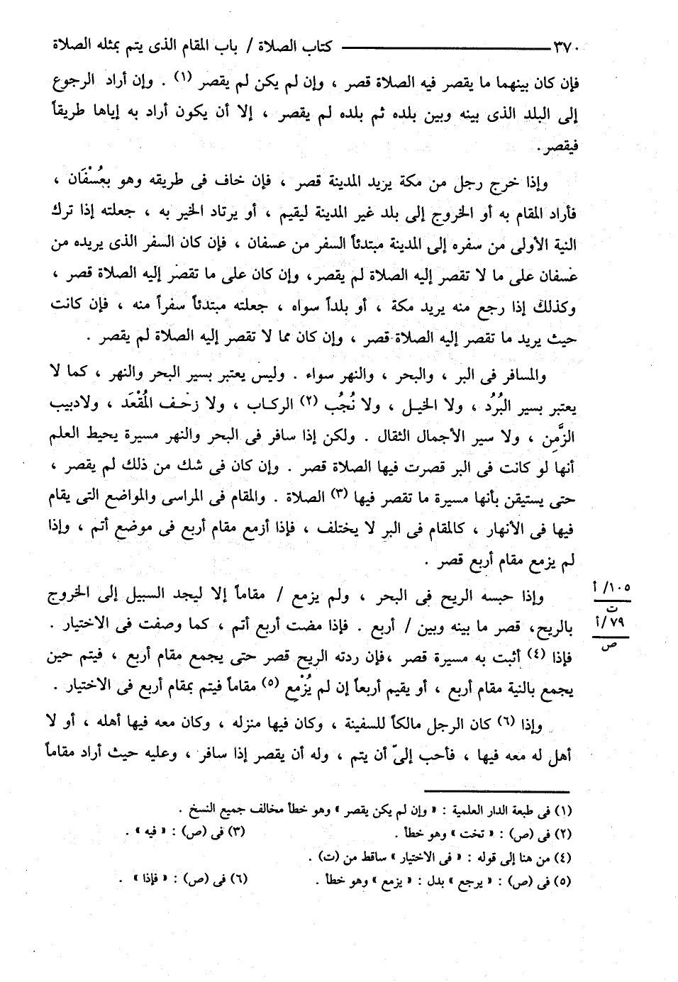 فَإِنْ كَانَ بَيْنَهُمَا مَا يُقْصَرُ فِيهِ الصَّلاَةُ قَصَرَ وَإِنْ لَمْ يَكُنْ يَقْصُرُ وَإِنْ أَرَادَ الرُّجُوعَ إلَى الْبَلَدِ الَّذِي بَيْنَهُ وَبَيْنَ بَلَدِهِ ثُمَّ بَلَدِهِ لَمْ يَقْصُرْ إلَّا أَنْ يَكُونَ أَرَادَ بِهِ إيَّاهَا طَرِيقًا فَيَقْصُرُ , وَإِذَا خَرَجَ رَجُلٌ مِنْ مَكَّةَ يُرِيدُ الْمَدِينَةَ قَصَرَ فَإِنْ خَافَ فِي طَرِيقِهِ وَهُوَ بِعُسْفَانَ فَأَرَادَ الْمُقَامَ بِهِ , أَوْ الْخُرُوجَ إلَى بَلَدٍ غَيْرِ الْمَدِينَةِ لِيُقِيمَ , أَوْ يَرْتَادَ الْخَيْرَ بِهِ جَعَلْته إذَا تَرَكَ النِّيَّةَ الْأُولَى مِنْ سَفَرِهِ إلَى الْمَدِينَةِ مُبْتَدِئًا السَّفَرَ مِنْ عُسْفَانَ فَإِنْ كَانَ السَّفَرُ الَّذِي يُرِيدُهُ مِنْ عُسْفَانَ عَلَى مَا لاَ تُقْصَرُ إلَيْهِ الصَّلاَةُ لَمْ يَقْصُرْ وَإِنْ كَانَ عَلَى مَا تُقْصَرُ إلَيْهِ الصَّلاَةُ قَصَرَ , وَكَذَلِكَ إذَا رَجَعَ مِنْهُ يُرِيدُ مَكَّةَ أَوْ بَلَدًا سِوَاهُ جَعَلْته مُبْتَدِئًا سَفَرًا مِنْهُ فَإِنْ كَانَتْ حَيْثُ يُرِيدُ مَا تُقْصَرُ إلَيْهِ الصَّلاَةُ قَصَرَ , وَإِنْ كَانَ مِمَّا لاَ تُقْصَرُ إلَيْهِ الصَّلاَةُ لَمْ يَقْصُرْ وَالْمُسَافِرُ فِي الْبَرِّ وَالْبَحْرِ وَالنَّهْرِ سَوَاءٌ وَلَيْسَ يُعْتَبَرُ بِسَيْرِ الْبَحْرِ وَالنَّهْرِ كَمَا لاَ يُعْتَبَرُ بِسَيْرِ الْبَرِّ وَلاَ الْخَيْلِ وَلاَ نُجُبِ الرِّكَابِ وَلاَ زَحْفَ الْمُقْعَدِ وَلاَ دَبِيبَ الزَّمِنِ وَلاَ سَيْرَ الْأَحْمَالِ الثِّقَالِ , وَلَكِنْ إذَا سَافَرَ فِي الْبَحْرِ وَالنَّهْرِ مَسِيرَةً يُحِيطُ الْعِلْمُ أَنَّهَا لَوْ كَانَتْ فِي الْبَرِّ قُصِرَتْ فِيهَا الصَّلاَةُ قَصَرَ وَإِنْ كَانَ فِي شَكٍّ مِنْ ذَلِكَ لَمْ يَقْصُرُ حَتَّى يَسْتَيْقِنَ بِأَنَّهَا مَسِيرَةُ مَا تُقْصَرُ فِيهَا الصَّلاَةُ . وَالْمُقَامُ فِي الْمَرَاسِي وَالْمَوَاضِعِ الَّتِي يُقَامُ فِيهَا فِي الْأَنْهَارِ كَالْمُقَامِ فِي الْبِرِّ , لاَ يَخْتَلِفُ فَإِذَا أَزْمَعَ مُقَامَ أَرْبَعٍ فِي مَوْضِعٍ أَتَمَّ وَإِذَا لَمْ يُزْمِعْ مُقَامَ أَرْبَعٍ قَصَرَ وَإِذَا حَبَسَهُ الرِّيحُ فِي الْبَحْرِ وَلَمْ يُزْمِعْ مُقَامًا إلَّا لِيَجِدَ السَّبِيلَ إلَى الْخُرُوجِ بِالرِّيحِ قَصَرَ مَا بَيْنَهُ وَبَيْنَ أَرْبَعٍ فَإِذَا مَضَتْ أَرْبَعٌ أَتَمَّ كَمَا وَصَفْت فِي الِاخْتِيَارِ فَإِذَا أَثْبَتَ بِهِ مَسِيرَةً قَصَرَ فَإِنْ رَدَّتْهُ الرِّيحُ قَصَرَ حَتَّى يَجْمَعَ مُقَامَ أَرْبَعٍ فَيُتِمَّ حِينَ يَجْمَعُ بِالنِّيَّةِ مُقَامَ أَرْبَعٍ , أَوْ يُقِيمُ أَرْبَعًا إنْ لَمْ يُزْمِعْ مُقَامًا , فَيُتِمُّ بِمُقَامِ أَرْبَعٍ فِي الِاخْتِيَارِ , وَإِذَا كَانَ الرَّجُلُ مَالِكًا لِلسَّفِينَةِ وَكَانَ فِيهَا مَنْزِلُهُ وَكَانَ مَعَهُ فِيهَا أَهْلُهُ , أَوْ لاَ أَهْلَ لَهُ مَعَهُ فِيهَا فَأَحَبُّ إلَيَّ أَنْ يُتِمَّ وَلَهُ أَنْ يَقْصُرَ إذَا سَافَرَ وَعَلَيْهِ حَيْثُ أَرَادَ مُقَامًا@