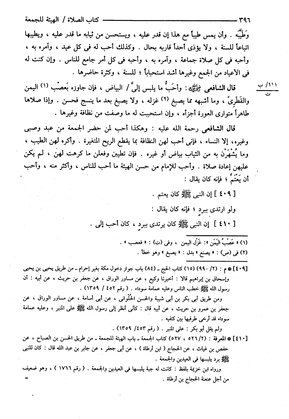 قَالَ الشَّافِعِيُّ : وَهَكَذَا أُحِبُّ لِمَنْ حَضَرَ الْجُمُعَةَ مِنْ عَبْدٍ وَصَبِيٍّ وَغَيْرِهِ إلَّا النِّسَاءَ فَإِنِّي أُحِبُّ لَهُنَّ النَّظَافَةَ بِمَا يَقْطَعُ الرِّيحَ الْمُتَغَيِّرَةَ وَأَكْرَهُ لَهُنَّ الطِّيبَ وَمَا يُشْهَرْنَ بِهِ مِنْ الثِّيَابِ بَيَاضٍ , أَوْ غَيْرِهِ فَإِنْ تَطَيَّبْنَ وَفَعَلْنَ مَا كَرِهْت لَهُنَّ لَمْ يَكُنْ عَلَيْهِنَّ إعَادَةُ صَلاَةٍ وَأُحِبُّ لِلْإِمَامِ مِنْ حُسْنِ الْهَيْئَةِ مَا أُحِبُّ لِلنَّاسِ وَأَكْثَرَ مِنْهُ , وَأُحِبُّ أَنْ يَعْتَمَّ فَإِنَّهُ كَانَ يُقَالُ إنَّ النَّبِيَّ - صلى الله عليه وسلم - كَانَ يَعْتَمُّ وَلَوْ ارْتَدَى بِبُرْدٍ فَإِنَّهُ كَانَ يُقَالُ : إنَّ النَّبِيَّ - صلى الله عليه وسلم - كَانَ يَرْتَدِي بِبُرْدٍ , كَانَ أَحَبَّ إلَيَّ .@