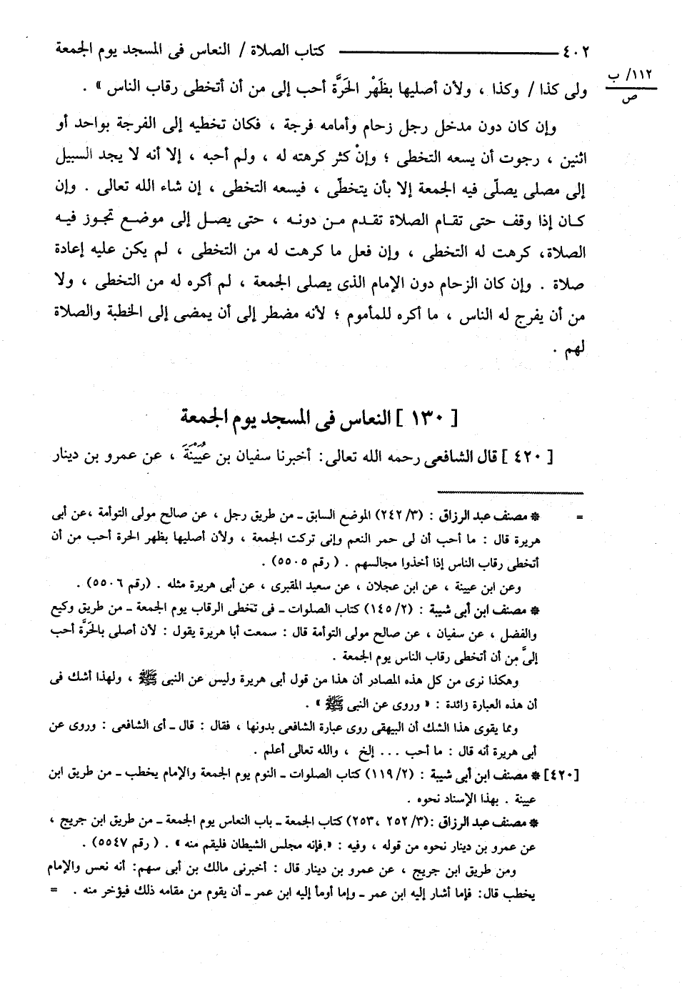 قَالَ الشَّافِعِيُّ : رحمه الله تعالى أَخْبَرَنَا سُفْيَانُ بْنُ عُيَيْنَةَ عَنْ عَمْرِو بْنِ دِينَارٍ @