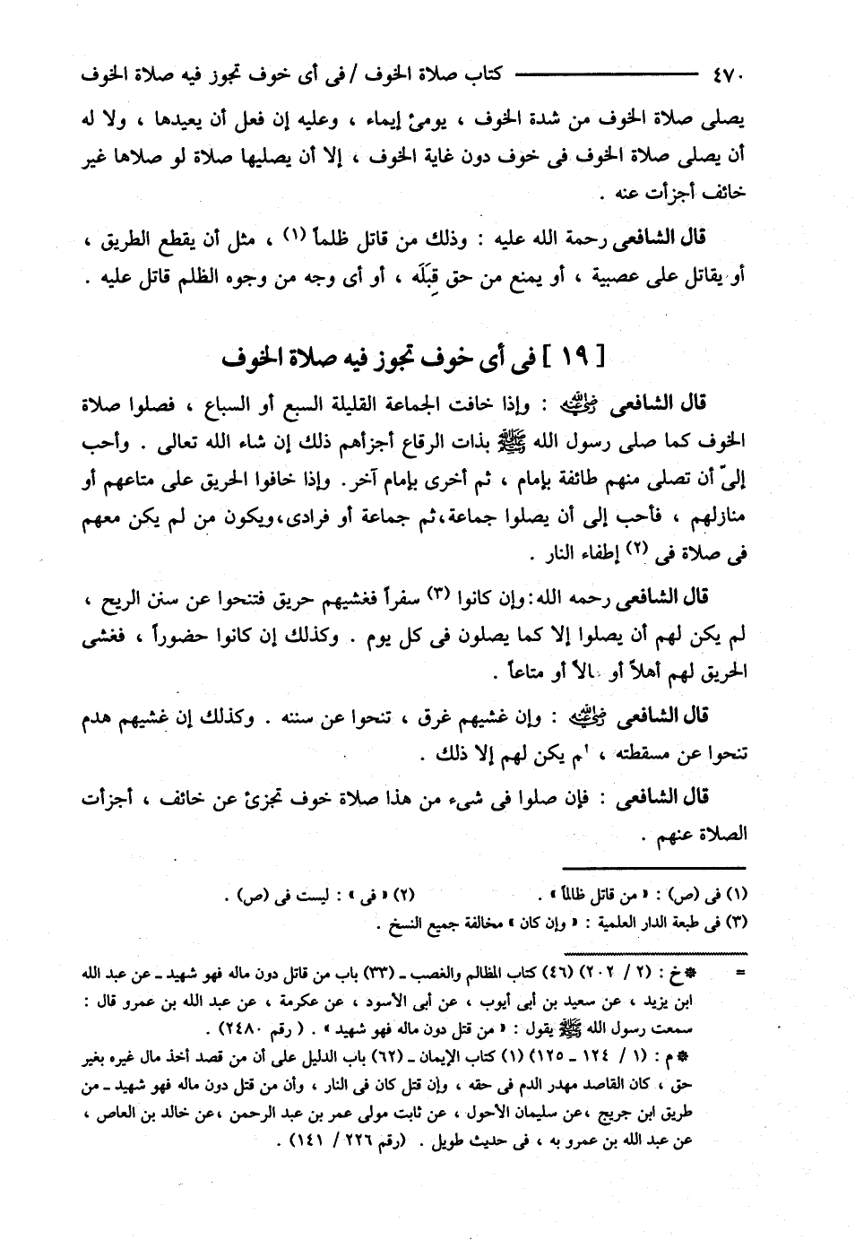 قَالَ الشَّافِعِيُّ : رحمه الله تعالى وَإِذَا خَافَتْ الْجَمَاعَةُ الْقَلِيلَةُ السَّبُعَ أَوْ السِّبَاعَ فَصَلَّوْا صَلاَةَ الْخَوْفِ كَمَا صَلَّى رَسُولُ اللَّهِ - صلى الله عليه وسلم - بِذَاتِ الرِّقَاعِ أَجْزَأَهُمْ ذَلِكَ إنْ شَاءَ اللَّهُ تَعَالَى , وَأَحَبُّ إلَيَّ أَنْ تُصَلِّيَ مِنْهُمْ طَائِفَةٌ بِإِمَامٍ ثُمَّ أُخْرَى بِإِمَامٍ آخَرَ , وَإِذَا خَافُوا الْحَرِيقَ عَلَى مَتَاعِهِمْ أَوْ مَنَازِلِهِمْ فَأَحَبُّ إلَيَّ أَنْ يُصَلُّوا جَمَاعَةً ثُمَّ جَمَاعَةً أَوْ فُرَادَى , وَيَكُونَ مَنْ لَمْ يَكُنْ مَعَهُمْ فِي صَلاَةٍ فِي إطْفَاءِ النَّارِ .