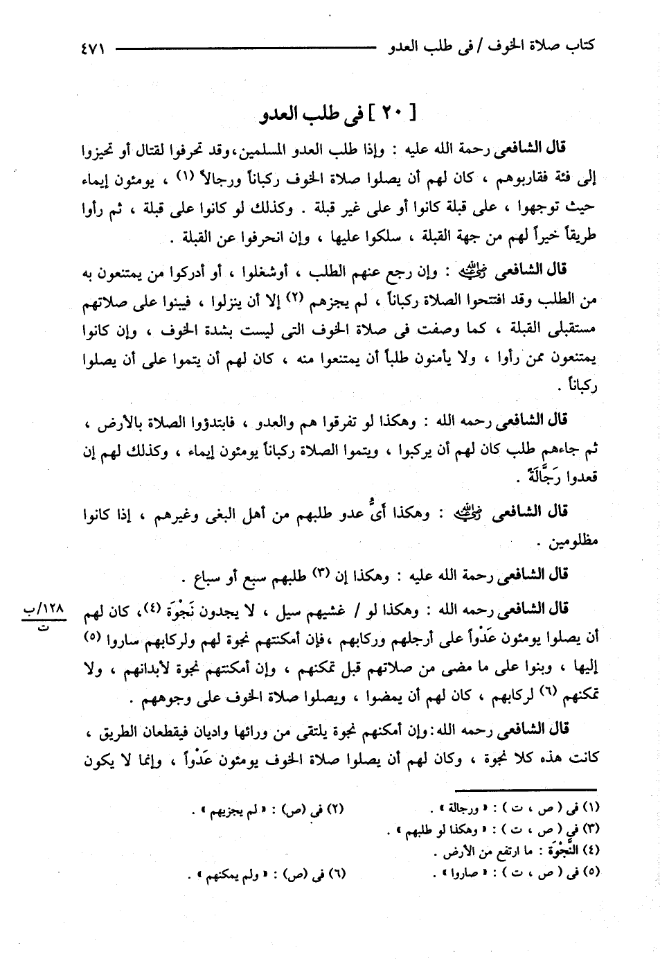 قَالَ الشَّافِعِيُّ : وَهَكَذَا لَوْ تَفَرَّقُوا هُمْ وَالْعَدُوُّ فَابْتَدَءُوا الصَّلاَةَ بِالْأَرْضِ ثُمَّ جَاءَهُمْ طَلَبُ كَانَ لَهُمْ أَنْ يَرْكَبُوا وَيُتِمُّوا الصَّلاَةَ رُكْبَانًا يُومِئُونَ إيمَاءً , وَكَذَلِكَ لَهُمْ إنْ قَعَدُوا رَجَّالَةً