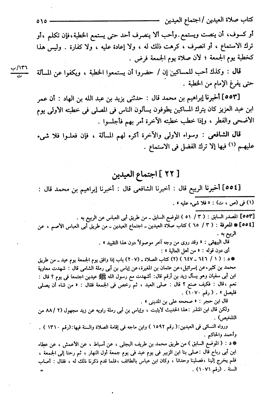 اجْتِمَاعُ الْعِيدَيْنِ أَخْبَرَنَا الرَّبِيعُ قَالَ أَخْبَرَنَا الشَّافِعِيُّ قَالَ أَخْبَرَنَا إبْرَاهِيمُ بْنُ مُحَمَّدٍ قَالَ@