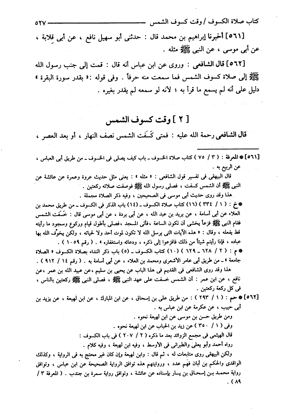 قَالَ الشَّافِعِيُّ : رحمه الله تعالى : فَمَتَى كَسَفَتْ الشَّمْسُ نِصْفَ النَّهَارِ أَوْ بَعْدَ الْعَصْرِ @