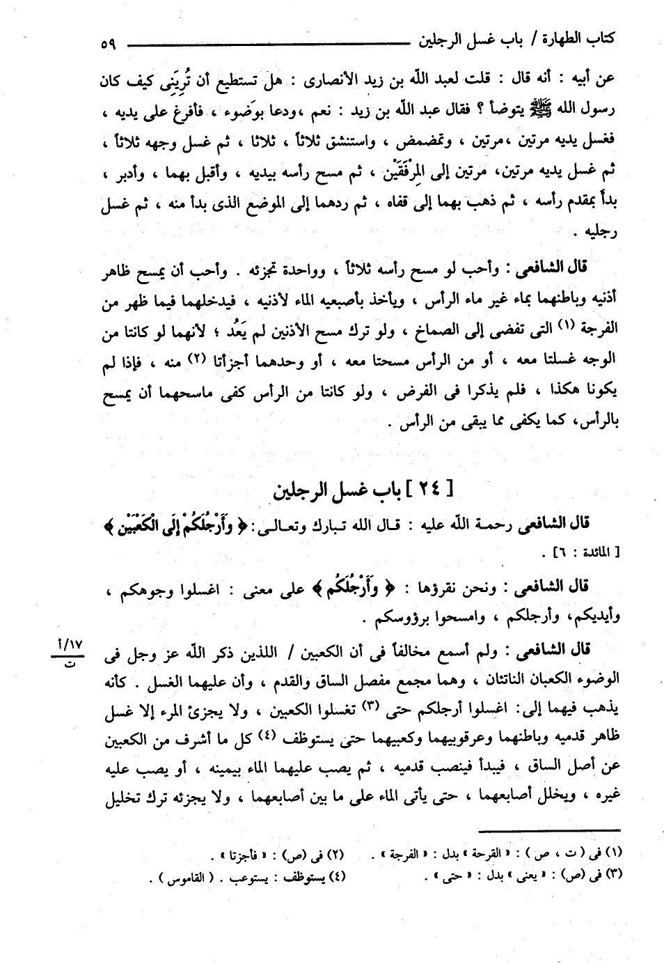 قَالَ الشَّافِعِيُّ : وَنَحْنُ نَقْرَؤُهَا وَأَرْجُلَكُمْ عَلَى مَعْنَى اغْسِلُوا وُجُوهَكُمْ وَأَيْدِيَكُمْ وَأَرْجُلَكُمْ وَامْسَحُوا بِرُءُوسِكُمْ