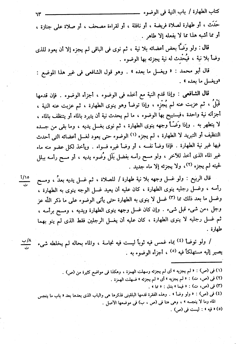 ( قَالَ الرَّبِيعُ ) وَلَوْ غَسَلَ وَجْهَهُ بِلاَ نِيَّةِ طَهَارَةٍ لِلصَّلاَةِ ثُمَّ غَسَلَ يَدَيْهِ بَعْدُ وَمَسَحَ رَأْسَهُ وَغَسَلَ رِجْلَيْهِ يَنْوِي الطَّهَارَةَ كَانَ عَلَيْهِ أَنْ يُعِيدَ غَسْلَ الْوَجْهِ يَنْوِي بِهِ الطَّهَارَةَ وَغَسَلَ مَا بَعْدَ ذَلِكَ مِمَّا غَسَلَ لاَ يَنْوِي بِهِ الطَّهَارَةَ حَتَّى يَأْتِيَ الْوُضُوءُ عَلَى مَا ذَكَرَ اللَّهُ عَزَّ وَجَلَّ مِنْ شَيْءٍ قَبْلَ شَيْءٍ وَإِنْ كَانَ غَسَلَ وَجْهَهُ يَنْوِي الطَّهَارَةَ وَيَدَيْهِ وَمَسَحَ بِرَأْسِهِ ثُمَّ غَسَلَ رِجْلَيْهِ لاَ يَنْوِي الطَّهَارَةَ كَانَ عَلَيْهِ أَنْ يَغْسِلَ الرِّجْلَيْنِ فَقَطْ الَّذِي لَمْ يَنْوِ بِهِمَا طَهَارَةً .