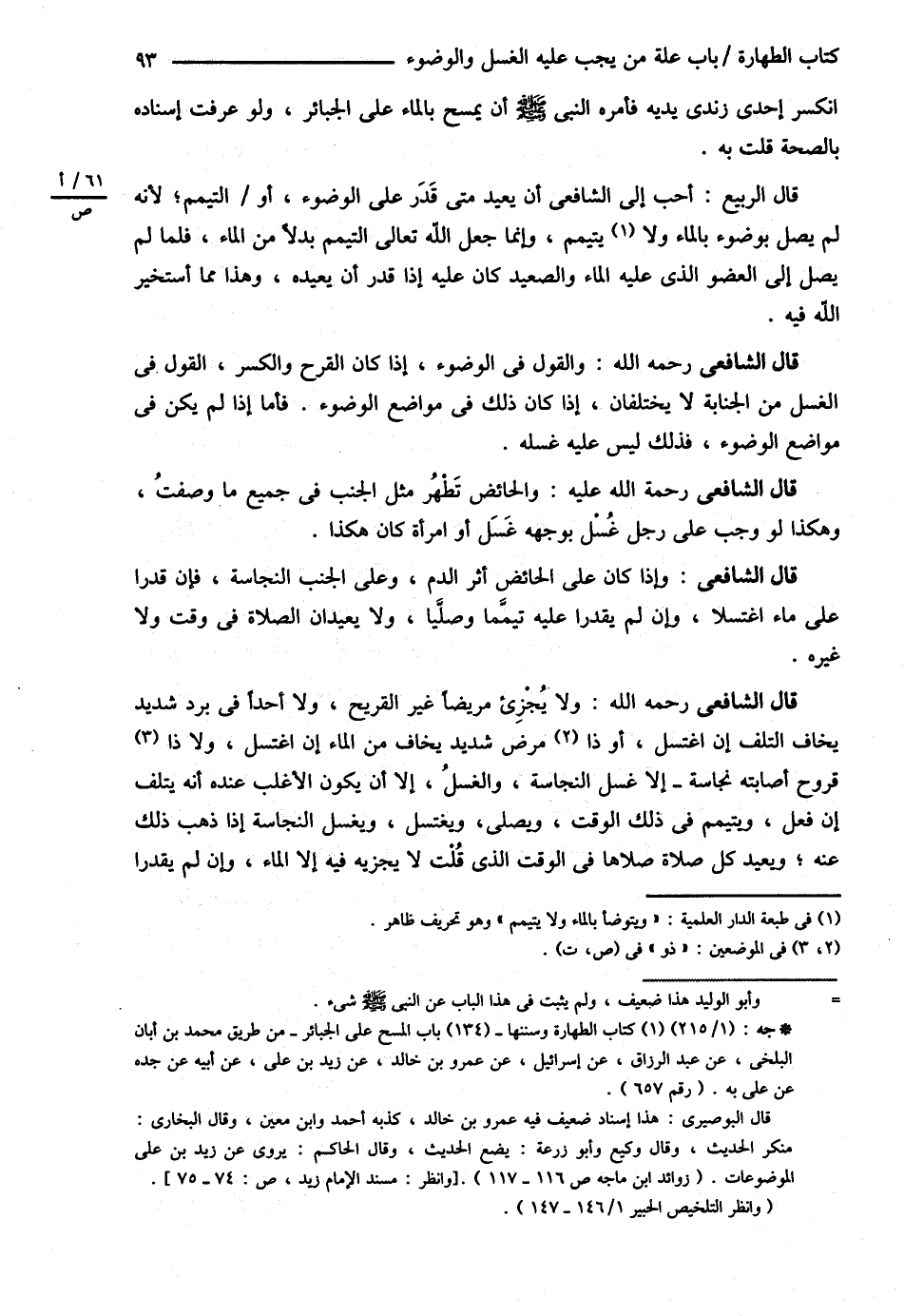 انْكَسَرَ إحْدَى زَنْدَيْ يَدَيْهِ فَأَمَرَهُ النَّبِيُّ - صلى الله عليه وسلم - أَنْ يَمْسَحَ بِالْمَاءِ عَلَى الْجَبَائِرِ ? وَلَوْ عَرَفْت إسْنَادَهُ بِالصِّحَّةِ قُلْت بِهِ . ( قَالَ الرَّبِيعُ ) أَحَبُّ إلَى الشَّافِعِيِّ أَنْ يُعِيدَ مَتَى قَدَرَ عَلَى الْوُضُوءِ أَوْ التَّيَمُّمِ ; لِأَنَّهُ لَمْ يُصَلِّ بِوُضُوءٍ بِالْمَاءِ وَلاَ يَتَيَمَّمُ وَإِنَّمَا جَعَلَ اللَّهُ تَعَالَى التَّيَمُّمَ بَدَلاً مِنْ الْمَاءِ فَلَمَّا لَمْ يَصِلْ إلَى الْعُضْوِ الَّذِي عَلَيْهِ الْمَاءُ وَالصَّعِيدُ كَانَ عَلَيْهِ إذَا قَدَرَ أَنْ يُعِيدَهُ وَهَذَا مِمَّا اُسْتُخِيرَ اللَّهُ فِيهِ