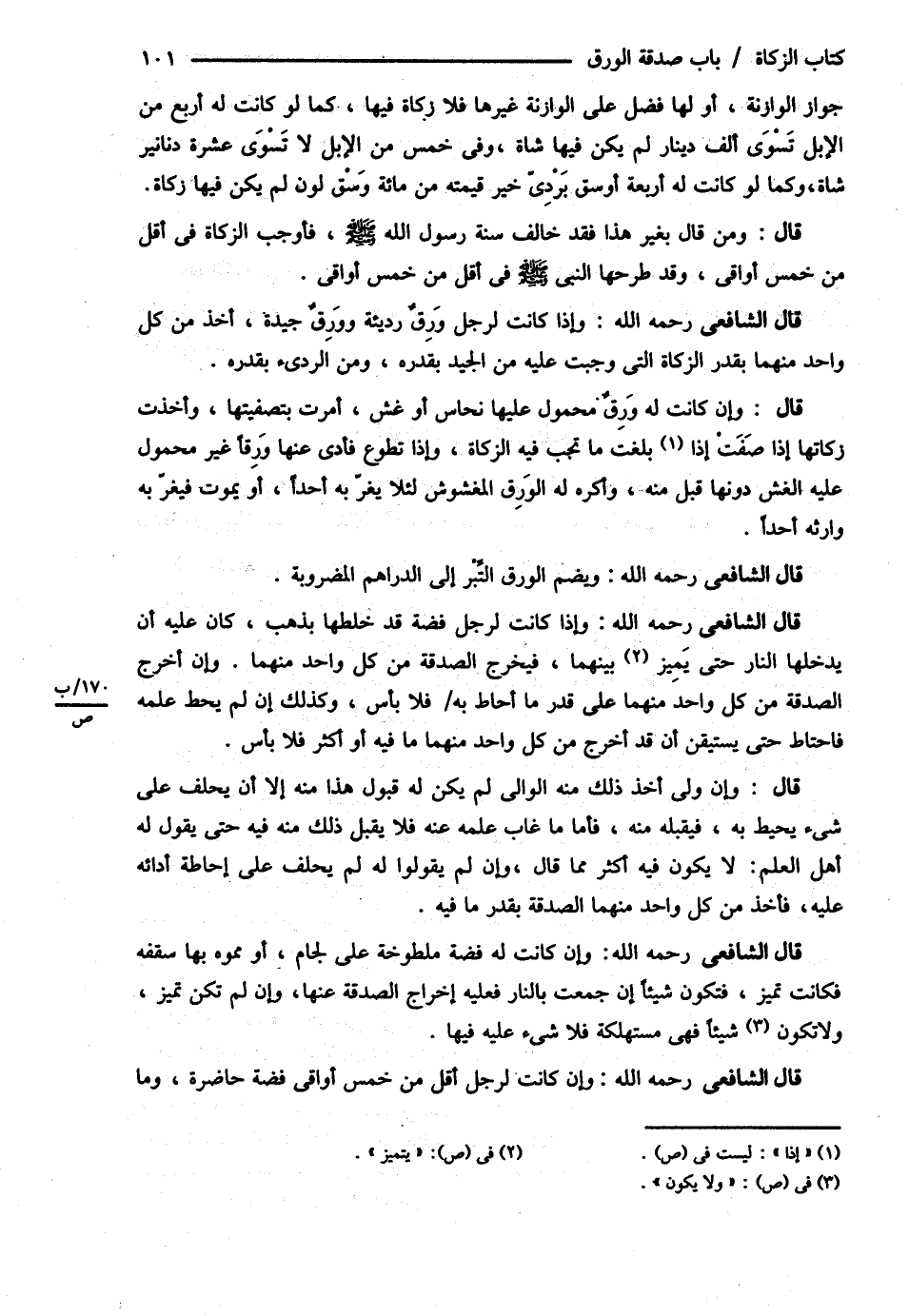 قَالَ الشَّافِعِيُّ : وَسَوَاءٌ كَانَ الْوَرِقُ دَرَاهِمَ جِيَادًا مُصَفَّاةً غَايَةُ سِعْرِهَا عَشَرَةٌ بِدِينَارٍ , أَوْ وَرِقًا تِبْرًا , ثَمَنُ عِشْرِينَ مِنْهُ دِينَارٌ , وَلاَ أَنْظُرُ إلَى قِيمَتِهِ مِنْ غَيْرِهِ ; لِأَنَّ الزَّكَاةَ فِيهِ نَفْسِهِ كَمَا لاَ أَنْظُرُ إلَى ذَلِكَ فِي الْمَاشِيَةِ وَلاَ الزَّرْعِ وَأَضُمُّ كُلَّ جَيِّدٍ مِنْ صِنْفٍ إلَى رَدِيءٍ مِنْ صِنْفِهِ