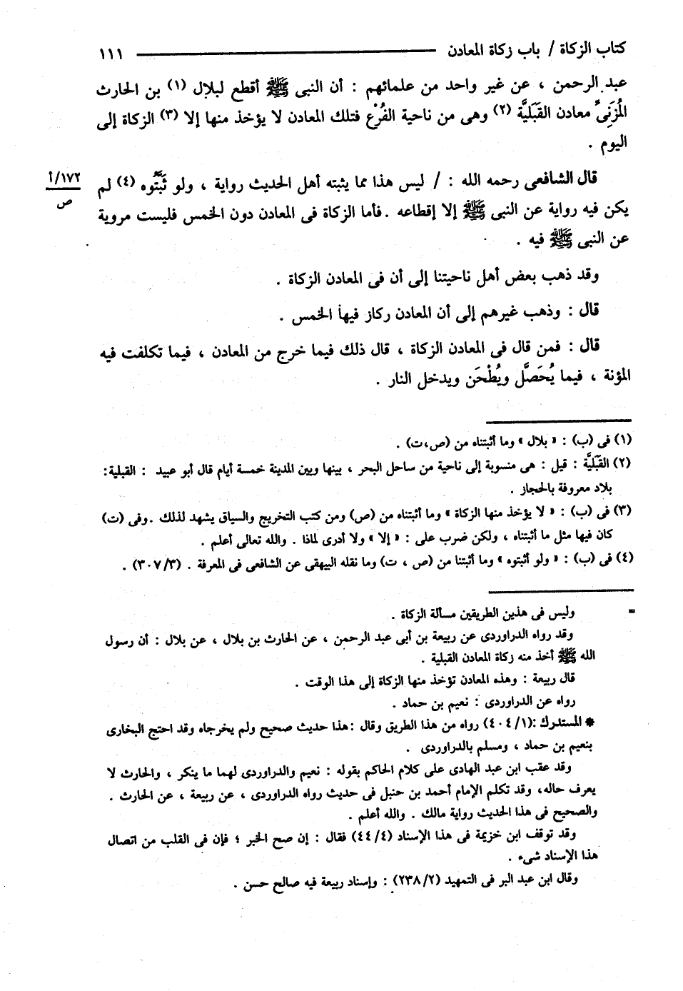 قَالَ الشَّافِعِيُّ : وَقَدْ ذَهَبَ بَعْضُ أَصْحَابِنَا إلَى أَنَّ الْمَعَادِنَ لَيْسَ بِرِكَازٍ , وَأَنَّ فِيهَا الزَّكَاةَ أَخْبَرَنَا الرَّبِيعُ قَالَ أَخْبَرَنَا الشَّافِعِيُّ قَالَ أَخْبَرَنَا مَالِكٌ عَنْ رَبِيعَةَ بْنِ أَبِي @