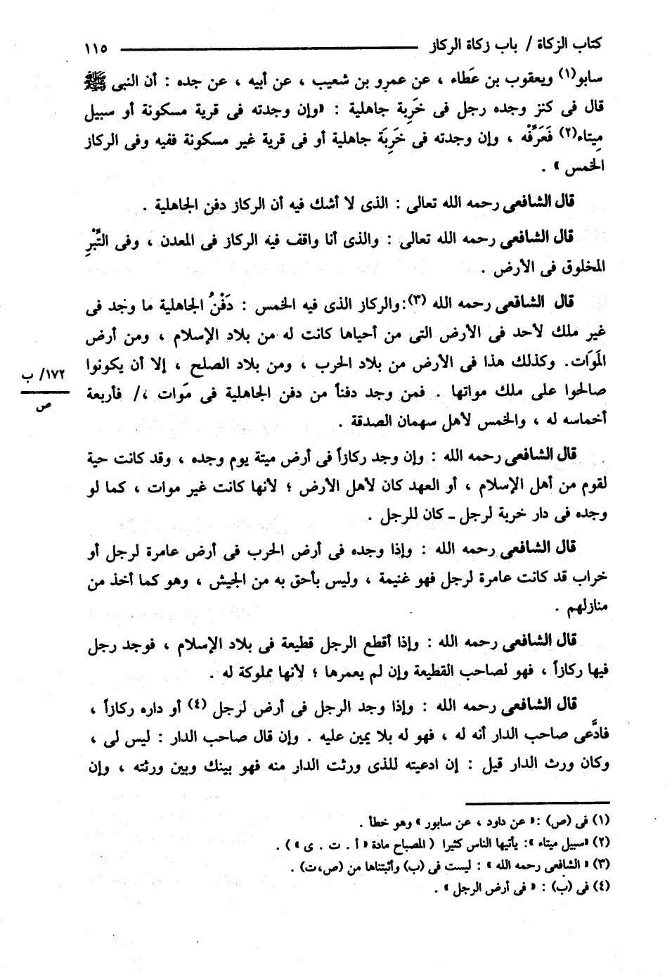 أَخْبَرَنَا الرَّبِيعُ قَالَ أَخْبَرَنَا الشَّافِعِيُّ قَالَ أَخْبَرَنَا مَالِكٌ عَنْ ابْنِ شِهَابٍ عَنْ سَعِيدِ بْنِ الْمُسَيِّبِ وَأَبِي سَلَمَةَ أَنَّ النَّبِيَّ - صلى الله عليه وسلم - قَالَ : { فِي الرِّكَازِ الْخُمْسُ } أَخْبَرَنَا الرَّبِيعُ قَالَ : أَخْبَرَنَا الشَّافِعِيُّ قَالَ : أَخْبَرَنَا سُفْيَانُ عَنْ دَاوُد بْنِ@