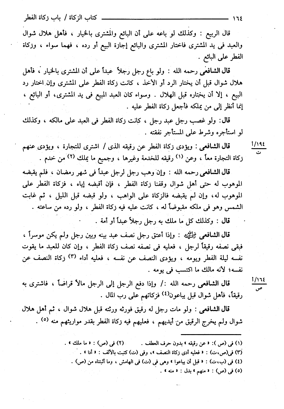 قال : وَمَنْ قُلْت يَجِبُ عَلَيْهِ أَنْ يُزَكِّيَ عَنْهُ زَكَاةَ الْفِطْرِ , فَإِذَا وُلِدَ لَهُ وَلَدٌ , أَوْ كَانَ أَحَدٌ فِي مِلْكِهِ , أَوْ عِيَالِهِ فِي شَيْءٍ مِنْ نَهَارِ آخِرِ يَوْمٍ مِنْ شَهْرِ رَمَضَانَ فَغَابَتْ الشَّمْسُ لَيْلَةَ هِلاَلِ شَوَّالٍ وَجَبَتْ عَلَيْهِ زَكَاةُ الْفِطْرِ عَنْهُ , وَإِنْ مَاتَ مِنْ لَيْلَتِهِ , وَإِذَا غَابَتْ الشَّمْسُ مِنْ لَيْلَةِ الْفِطْرِ ثُمَّ وُلِدَ بَيْنَهُمْ , أَوْ صَارَ وَاحِدٌ مِنْهُمْ فِي عِيَالِهِ لَمْ تَجِبْ عَلَيْهِ زَكَاةُ الْفِطْرِ فِي عَامِهِ ذَلِكَ عَنْهُ , وَكَانَ فِي سُقُوطِ زَكَاةِ الْفِطْرِ عَنْهُ كَالْمَالِ يَمْلِكُهُ بَعْدَ الْحَوْلِ , وَإِنْ كَانَ عَبْدٌ بَيْنَهُ وَبَيْنَ رَجُلٍ فَعَلَى كُلِّ وَاحِدٍ مِنْهُمَا أَنْ يُزَكِّيَ عَنْهُ مِنْ زَكَاةِ الْفِطْرِ بِقَدْرِ مَا يَمْلِكُ مِنْهُ