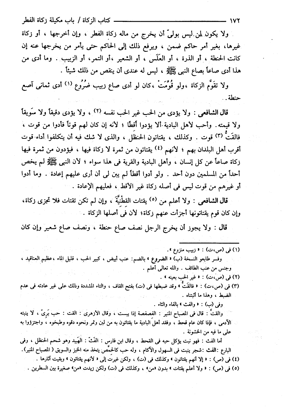 قَالَ الشَّافِعِيُّ : وَفِي سُنَّةِ رَسُولِ اللَّهِ - صلى الله عليه وسلم - أَنَّ زَكَاةَ الْفِطْرِ مِمَّا يَقْتَاتُ الرَّجُلُ وَمِمَّا فِيهِ زَكَاةٌ.