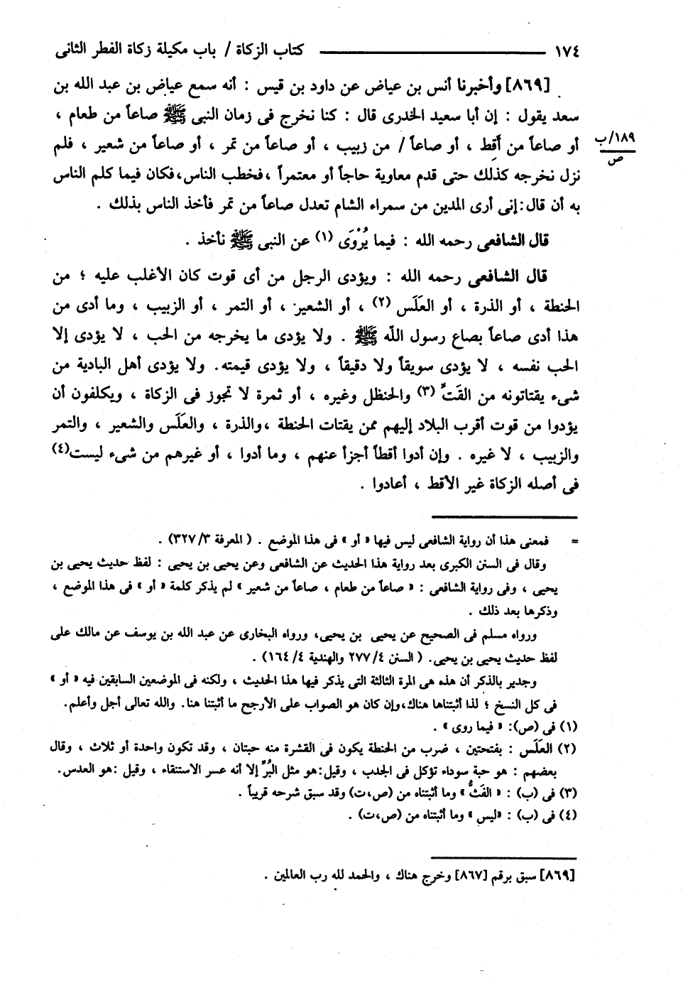 قَالَ الشَّافِعِيُّ : رحمه الله تعالى أَخْبَرَنَا مَالِكٌ عَنْ زَيْدِ بْنِ أَسْلَمَ عَنْ عِيَاضِ بْنِ عَبْدِ اللَّهِ بْنِ سَعْدٍ أَنَّهُ سَمِعَ أَبَا سَعِيدٍ الْخُدْرِيَّ يَقُولُ { كُنَّا نُخْرِجُ زَكَاةَ الْفِطْرِ صَاعًا مِنْ طَعَامٍ , أَوْ صَاعًا مِنْ تَمْرٍ , أَوْ صَاعًا مِنْ شَعِيرٍ , أَوْ صَاعًا مِنْ زَبِيبٍ , أَوْ صَاعًا مِنْ أَقِطٍ }@