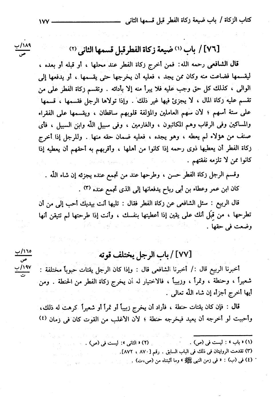 قَالَ الشَّافِعِيُّ : وَأَخْتَارُ قَسْمَ زَكَاةِ الْفِطْرِ بِنَفْسِي عَلَى طَرْحِهَا عِنْدَ مَنْ تُجْمَعُ عِنْدَهُ , أَخْبَرَنَا الرَّبِيعُ قَالَ أَخْبَرَنَا الشَّافِعِيُّ قَالَ أَخْبَرَنَا عَبْدُ اللَّهِ بْنُ الْمُؤَمَّلِ قَالَ سَمِعْت ابْنَ أَبِي مُلَيْكَةَ وَرَجُلٌ يَقُولُ لَهُ : إنَّ عَطَاءً أَمَرَنِي أَنْ أَطْرَحَ زَكَاةَ الْفِطْرِ فِي الْمَسْجِدِ فَقَالَ ابْنُ أَبِي مُلَيْكَةَ : أَفْتَاك الْعِلْجُ بِغَيْرِ رَأْيِهِ ؟ اقْسِمْهَا , فَإِنَّمَا يُعْطِيهَا ابْنُ هِشَامٍ أَحْرَاسَهُ وَمَنْ شَاءَ , أَخْبَرَنَا الرَّبِيعُ قَالَ أَخْبَرَنَا الشَّافِعِيُّ قَالَ أَخْبَرَنَا أَنَسُ بْنُ عِيَاضٍ عَنْ أُسَامَةَ بْنِ زَيْدٍ اللَّيْثِيِّ أَنَّهُ سَأَلَ سَالِمَ بْنَ عَبْدِ اللَّهِ عَنْ الزَّكَاةِ فَقَالَ : أَعْطِهَا أَنْتَ فَقُلْت : أَلَمْ يَكُنْ ابْنُ عُمَرَ يَقُولُ ادْفَعْهَا إلَى السُّلْطَانِ ؟ قَالَ : بَلَى . وَلَكِنِّي لاَ أَرَى أَنْ تَدْفَعَهَا إلَى السُّلْطَانِ أَخْبَرَنَا الرَّبِيعُ قَالَ أَخْبَرَنَا الشَّافِعِيُّ قَالَ أَخْبَرَنَا مَالِكٌ عَنْ نَافِعٍ أَنَّ عَبْدَ اللَّهَ بْنَ عُمَرَ كَانَ يَبْعَثُ بِزَكَاةِ الْفِطْرِ الَّتِي تُجْمَعُ عِنْدَهُ قَبْلَ الْفِطْرِ بِيَوْمَيْنِ , أَوْ ثَلاَثَةٍ .@