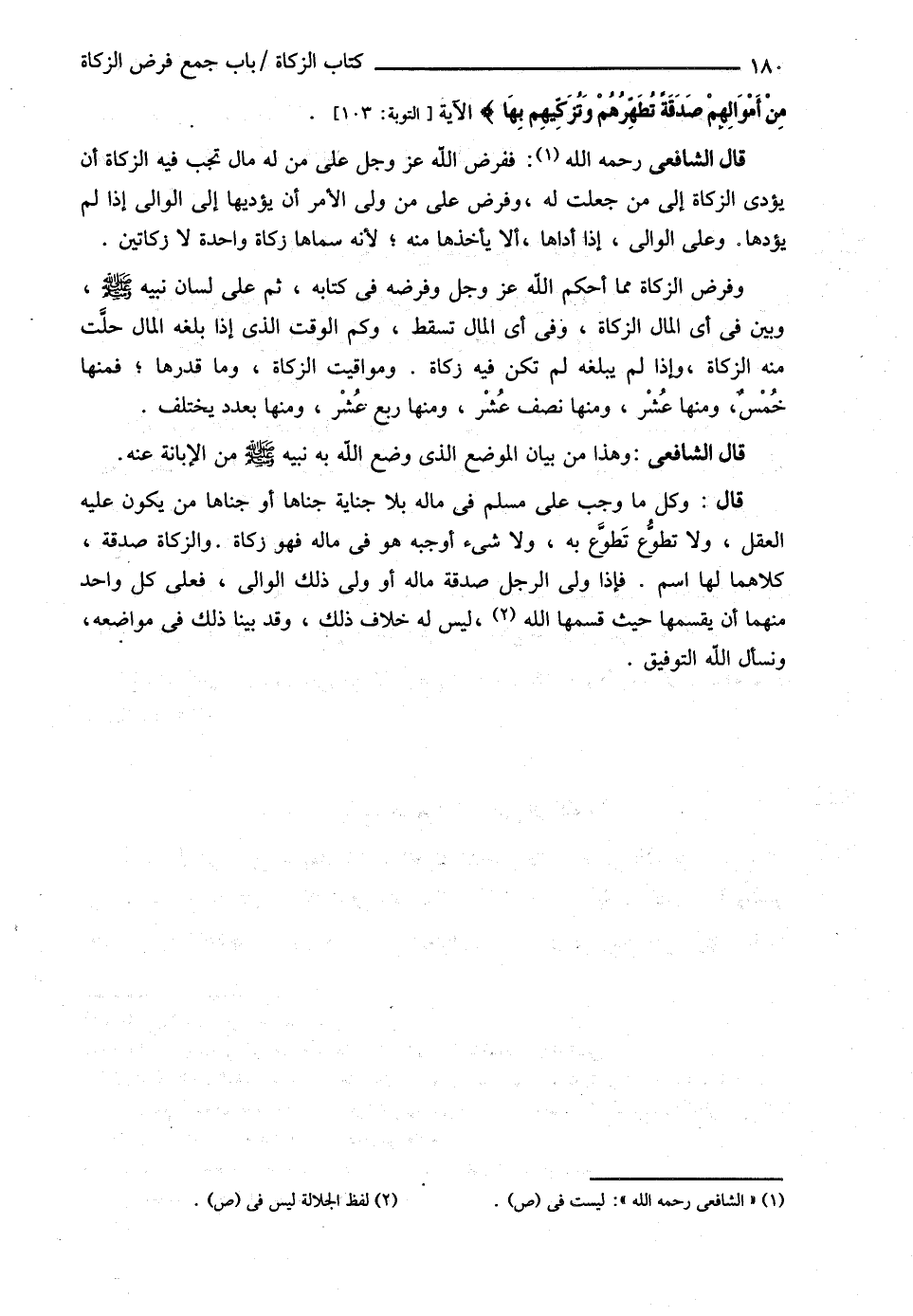 بَابُ جِمَاعِ فَرْضِ الزَّكَاةِ أَخْبَرَنَا الرَّبِيعُ بْنُ سُلَيْمَانَ قَالَ أَخْبَرَنَا الشَّافِعِيُّ قَالَ : فَرَضَ اللَّه عَزَّ وَجَلَّ الزَّكَاةَ فِي غَيْرِ مَوْضِعٍ مِنْ كِتَابِهِ قَدْ كَتَبْنَاهُ فِي آخِرِ الزَّكَاةِ فَقَالَ فِي غَيْرِ آيَةٍ مِنْ كِتَابِهِ { أَقِيمُوا الصَّلاَةَ وَآتُوا الزَّكَاةَ } يَعْنِي أَعْطُوا الزَّكَاةَ وَقَالَ عَزَّ وَجَلَّ لِنَبِيِّهِ - صلى الله عليه وسلم - { خُذْ@