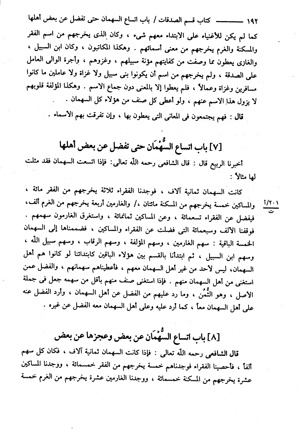 قَالَ الشَّافِعِيُّ : رحمه الله : وَجِمَاعُ مَا قَسَمْنَا عَلَى السُّهْمَانِ عَلَى اسْتِحْقَاقِ كُلِّ مَنْ سُمِّيَ لاَ عَلَى الْعَدَدِ وَلاَ عَلَى أَنْ يُعْطَى كُلُّ صِنْفٍ سَهْمًا , وَإِنْ لَمْ يَعْرِفُوهُ بِالْحَاجَةِ إلَيْهِ وَلاَ يَمْنَعُهُمْ أَنْ يَسْتَوْفُوا سُهْمَانَهُمْ أَنْ يَأْخُذُوا مِنْ غَيْرِهَا إذَا فَضَلَ عَنْ غَيْرِهِمْ ; لِأَنَّ اللَّهَ عَزَّ وَجَلَّ أَعْطَى كُلَّ صِنْفٍ مِنْهُمْ سَهْمًا مُؤَقَّتًا فَأَعْطَيْنَاهُ بِالْوَجْهَيْنِ مَعًا فَكَانَ مَعْقُولاً أَنَّ الْفُقَرَاءَ وَالْمَسَاكِينَ وَالْغَارِمِينَ إذَا أُعْطُوا حَتَّى يَخْرُجُوا مِنْ الْفَقْرِ وَالْمَسْكَنَةِ إلَى الْغِنَى وَالْغُرْمِ إلَى أَنْ لاَ يَكُونُوا غَارِمِينَ لَمْ يَكُنْ لَهُمْ فِي السُّهْمَانِ شَيْءٌ وَصَارُوا أَغْنِيَاءَ @