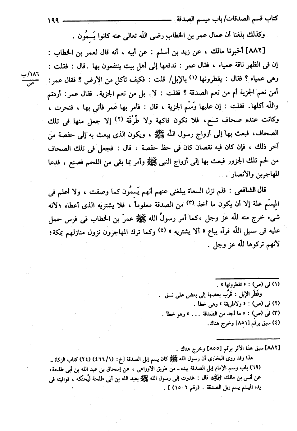 قَالَ الشَّافِعِيُّ : رحمه الله يَنْبَغِي لِوَالِي الصَّدَقَةِ أَنْ يَسِمَ كُلَّ مَا يَأْخُذُ مِنْهَا مِنْ إبِلٍ , أَوْ بَقَرٍ , أَوْ غَنَمٍ , يَسِمُ الْإِبِلَ وَالْبَقَرَ فِي أَفْخَاذِهَا وَالْغَنَمَ فِي أُصُولِ آذَانِهَا وَيَجْعَلُ مِيسَمَ الصَّدَقَةَ مَكْتُوبًا لِلَّهِ وَيَجْعَلُ مِيسَمَ الْغَنَمِ أَلْطَفَ مِنْ مِيسَمِ الْإِبِلِ وَالْبَقَرِ , وَإِنَّمَا قُلْت يَنْبَغِي لَهُ لِمَا بَلَغَنَا أَنَّ عُمَّالَ النَّبِيِّ - صلى الله عليه وسلم - كَانُوا يَسِمُونَ @