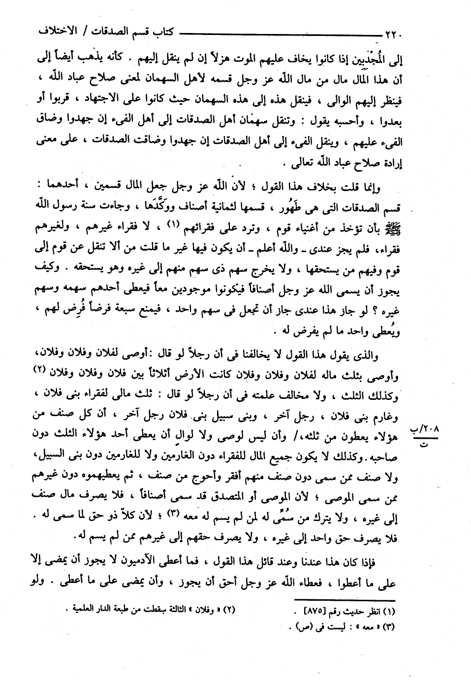 قَالَ الشَّافِعِيُّ : رحمه الله قَالَ بَعْضُ أَصْحَابِنَا : لاَ مُؤَلَّفَةً فَيَجْعَلُ سَهْمَ الْمُؤَلَّفَةِ وَسَهْمَ سَبِيلِ اللَّهِ فِي الْكُرَاعِ وَالسِّلاَحِ فِي ثَغْرِ الْمُسْلِمِينَ حَيْثُ يَرَاهُ الْوَالِي , وَقَالَ بَعْضُهُمْ : ابْنُ السَّبِيلِ مَنْ يُقَاسِمُ الصَّدَقَاتِ فِي الْبَلَدِ الَّذِي بِهِ الصَّدَقَاتُ مِنْ أَهْلِ الصَّدَقَاتِ أَوْ غَيْرِهِمْ وَقَالَ أَيْضًا : إنَّمَا قَسْمُ الصَّدَقَاتِ دَلاَلاَتٌ فَحَيْثُ كَانَتْ الْكَثْرَةُ أَوْ الْحَاجَةُ فَهِيَ أَسْعَدُ بِهِ , كَأَنَّهُ يَذْهَبُ إلَى أَنَّ السُّهْمَانَ لَوْ كَانَتْ أَلْفًا وَكَانَ غَارِمٌ غُرْمُهُ أَلْفٌ وَمَسَاكِينُ يُغْنِيهِمْ عَشَرَةُ آلاَفٍ , وَفُقَرَاءُ مِثْلُهُمْ يُغْنِيهِمْ مَا يُغْنِيهِمْ , وَابْنُ السَّبِيلِ مِثْلُهُمْ يُغْنِيهِمْ مَا يُغْنِيهِمْ , جُعِلَ لِلْغَارِمِ سَهْمٌ وَاحِدٌ مِنْ هَؤُلاَءِ , فَكَانَ أَكْثَرُ الْمَالِ فِي الَّذِينَ مَعَهُ , لِأَنَّهُمْ أَكْثَرُ مِنْهُ عَدَدًا وَحَاجَةً , كَأَنَّهُ يَذْهَبُ إلَى أَنَّ الْمَالَ فَوْضَى بَيْنَهُمْ فَيَقْتَسِمُونَهُ عَلَى الْعَدَدِ وَالْحَاجَةِ لاَ لِكُلِّ صِنْفٍ مِنْهُمْ سَهْمٌ وَمِنْ أَصْحَابِنَا مَنْ قَالَ : إذَا أُخِذَتْ صَدَقَةُ قَوْمٍ بِبَلَدٍ وَكَانَ آخَرُونَ بِبَلَدٍ مُجْدِبِينَ فَكَانَ أَهْلُ السُّهْمَانِ مِنْ أَهْلِ الْبَلَدِ الَّذِينَ أُخِذَتْ صَدَقَاتُهُمْ إنْ تُرِكُوا تَمَاسَكُوا وَلَمْ يَجْهَدُوا جَهْدَ الْمُجْدِبِينَ الَّذِينَ لاَ صَدَقَةَ بِبِلاَدِهِمْ , أَوْ لَهُمْ صَدَقَةٌ يَسِيرَةٌ لاَ تَقَعُ مِنْهُمْ مَوْقِعًا , نُقِلَتْ@