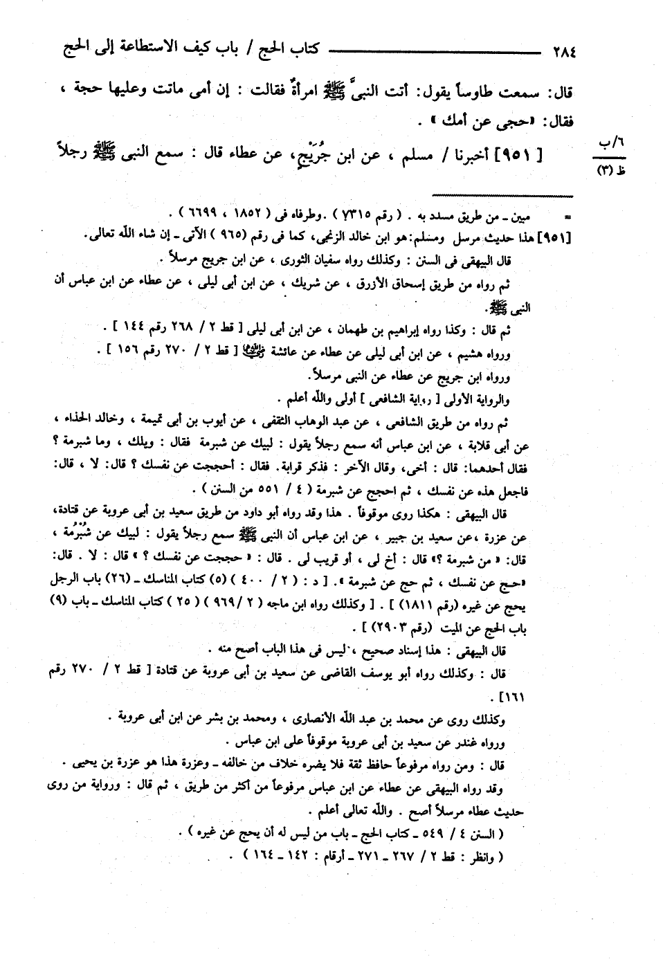ابْنِ مُحَمَّدٍ الدَّرَاوَرْدِيِّ عَنْ عَبْدِ الرَّحْمَنِ بْنِ الْحَارِثِ الْمَخْزُومِيِّ عَنْ زَيْدِ بْنِ عَلِيِّ بْنِ الْحُسَيْنِ بْنِ عَلِيٍّ عَنْ أَبِيهِ عَنْ عُبَيْدِ اللَّهِ بْنِ أَبِي رَافِعٍ عَنْ عَلِيِّ بْنِ أَبِي طَالِبٍ رضي الله تعالى عنه أَنَّ رَسُولَ اللَّهِ - صلى الله عليه وسلم - قَالَ : { وَكُلُّ مِنًى مَنْحَرٌ ثُمَّ جَاءَتْ امْرَأَةٌ مِنْ خَثْعَمَ فَقَالَتْ : يَا رَسُولَ اللَّهِ إنَّ أَبِي شَيْخٌ كَبِيرٌ قَدْ أَفْنَدَ وَأَدْرَكَتْهُ فَرِيضَةُ اللَّهِ عَلَى عِبَادِهِ فِي الْحَجِّ وَلاَ يَسْتَطِيعُ أَدَاءَهَا فَهَلْ يُجْزِي عَنْهُ أَنْ أُؤَدِّيَهَا عَنْهُ ؟ فَقَالَ : نَعَمْ }
