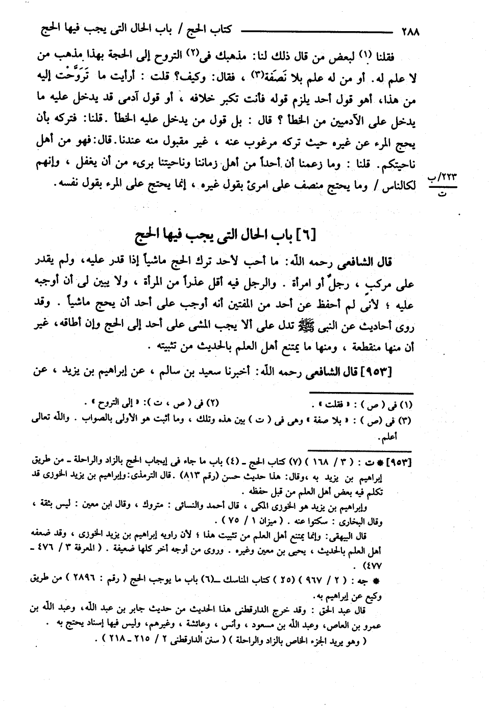 عَلَى مَنْ خَالَفَهُ أَنْ يُثْبِتَ الْأَضْعَفَ وَيَرُدَّ عَلَى غَيْرِهِ الْأَقْوَى ؟ وَكَيْفَ جَازَ لَهُ أَنْ يَقُولَ بِالْقَسَامَةِ وَهِيَ مُخْتَلَفٌ فِيهَا عَنْ النَّبِيِّ - صلى الله عليه وسلم - ؟ وَأَكْثَرُ الْخَلْقِ يُخَالِفُهُ فِيهَا وَأَعْطَى فِيهَا بِأَيْمَانِ الْمُدَّعِينَ الدَّمَ وَعَظِيمَ الْمَالِ , وَهُوَ لاَ يُعْطِي بِهَا جُرْحًا وَلاَ دِرْهَمًا وَلاَ أَقَلَّ مِنْ الْمَالِ فِي غَيْرِهَا , فَإِنْ قَالَ لَيْسَ فِي السُّنَّةِ قِيَاسٌ وَلاَ عَرْضٌ عَلَى الْعَقْلِ فَحَدِيثُ حَجِّ الرَّجُلِ عَنْ غَيْرِهِ أَثْبَتُ مِنْ جَمِيعِ مَا ذَكَرْت وَأَحْرَى أَنْ لاَ يَبْعُدَ عَنْ الْعَقْلِ بَعْدَمَا وَصَفْت مِنْ الْقَسَامَةِ وَغَيْرِهَا ثُمَّ عَادَ فَقَالَ بِمَا عَابَ مِنْ حَجِّ الْمَرْءِ عَنْ غَيْرِهِ حَيْثُ لَوْ تَرَكَهُ كَانَ أَجْوَزَ لَهُ وَتَرَكَهُ حَيْثُ لاَ يَجُوزُ تَرْكُهُ فَقَالَ إذَا أَوْصَى الرَّجُلُ أَنْ يُحَجَّ عَنْهُ حُجَّ عَنْهُ مِنْ مَالِهِ , وَأَصْلُ مَذْهَبِهِ أَنْ لاَ يَحُجَّ أَحَدٌ عَنْ أَحَدٍ , كَمَا لاَ يُصَلِّي أَحَدٌ عَنْ أَحَدٍ وَقَدْ سَأَلْت بَعْضَ مَنْ يَذْهَبُ مَذْهَبَهُ فَقُلْت : أَرَأَيْت لَوْ أَوْصَى الرَّجُلُ أَنْ يُصَلَّى أَوْ يُصَامَ عَنْهُ بِإِجَارَةٍ أَوْ نَفَقَةٍ غَيْرِ إجَارَةٍ أَوْ تَطَوُّعٍ , أَيُصَامُ أَوْ يُصَلَّى عَنْهُ ؟ قَالَ : لاَ . وَالْوَصِيَّةُ بَاطِلَةٌ فَقُلْت لَهُ : فَإِذَا كَانَ إنَّمَا أَبْطَلَ الْحَجَّ ; لِأَنَّهُ كَالصَّوْمِ وَالصَّلاَةِ فَكَيْفَ أَجَازَ أَنْ يَحُجَّ الْمَرْءُ عَنْ غَيْرِهِ بِمَالِهِ لَهُ وَلَمْ يُبْطِلْ الْوَصِيَّةَ فِيهِ كَمَا أَبْطَلَهَا ؟ قَالَ أَجَازَهَا النَّاسُ قُلْت : فَالنَّاسُ الَّذِينَ أَجَازُوهَا أَجَازُوا أَنْ يَحُجَّ الرَّجُلُ عَنْ الرَّجُلِ إذَا أَفْنَدَ . وَإِنْ مَاتَ بِكُلِّ حَالٍ وَأَنْتَ لَمْ تُجِزْهَا عَلَى مَا أَجَازُوهَا عَلَيْهِ مِمَّا جَاءَتْ بِهِ السُّنَّةُ وَلَمْ تُبْطِلْهَا إبْطَالَك الْوَصِيَّةَ بِالصَّوْمِ وَالصَّلاَةِ فَلَمْ يَكُنْ عِنْدَهُ فِيهَا سُنَّةٌ وَلاَ أَثَرٌ وَلاَ قِيَاسٌ وَلاَ مَعْقُولٌ , بَلْ كَانَ عِنْدَهُ خِلاَفُ هَذَا كُلِّهِ وَخِلاَفُ مَا احْتَجَّ بِهِ عَنْ ابْنِ عُمَرَ , فَمَا عَلِمْته إذْ قَالَ لاَ يَحُجُّ أَحَدٌ عَنْ أَحَدٍ اسْتَقَامَ عَلَيْهِ , وَلاَ أَمَرَ بِالْحَجِّ فِي الْحَالِ الَّتِي أَمَرَ بِهَا رَسُولُ اللَّهِ - صلى الله عليه وسلم - ثُمَّ أَصْحَابُهُ وَعَامَّةُ الْفُقَهَاءِ وَمَا عَلِمْت مَنْ رَدَّ الْأَحَادِيثَ مِنْ أَهْلِ الْكَلاَمِ تَرَوَّحُوا مِنْ الْحُجَّةِ عَلَيْنَا إلَى شَيْءٍ تَرَوُّحَهُمْ إلَى إبْطَالِ مَنْ أَبْطَلَ أَصْحَابُنَا أَنْ يَحُجَّ الْمَرْءُ عَنْ الْآخَرِ حَيْثُ أَبْطَلَهَا وَأَشْيَاءَ قَدْ تَرَكَهَا مِنْ السُّنَنِ وَلاَ شَغَبَ فِيهِ شَغَبَهُ فِي هَذَا ,@