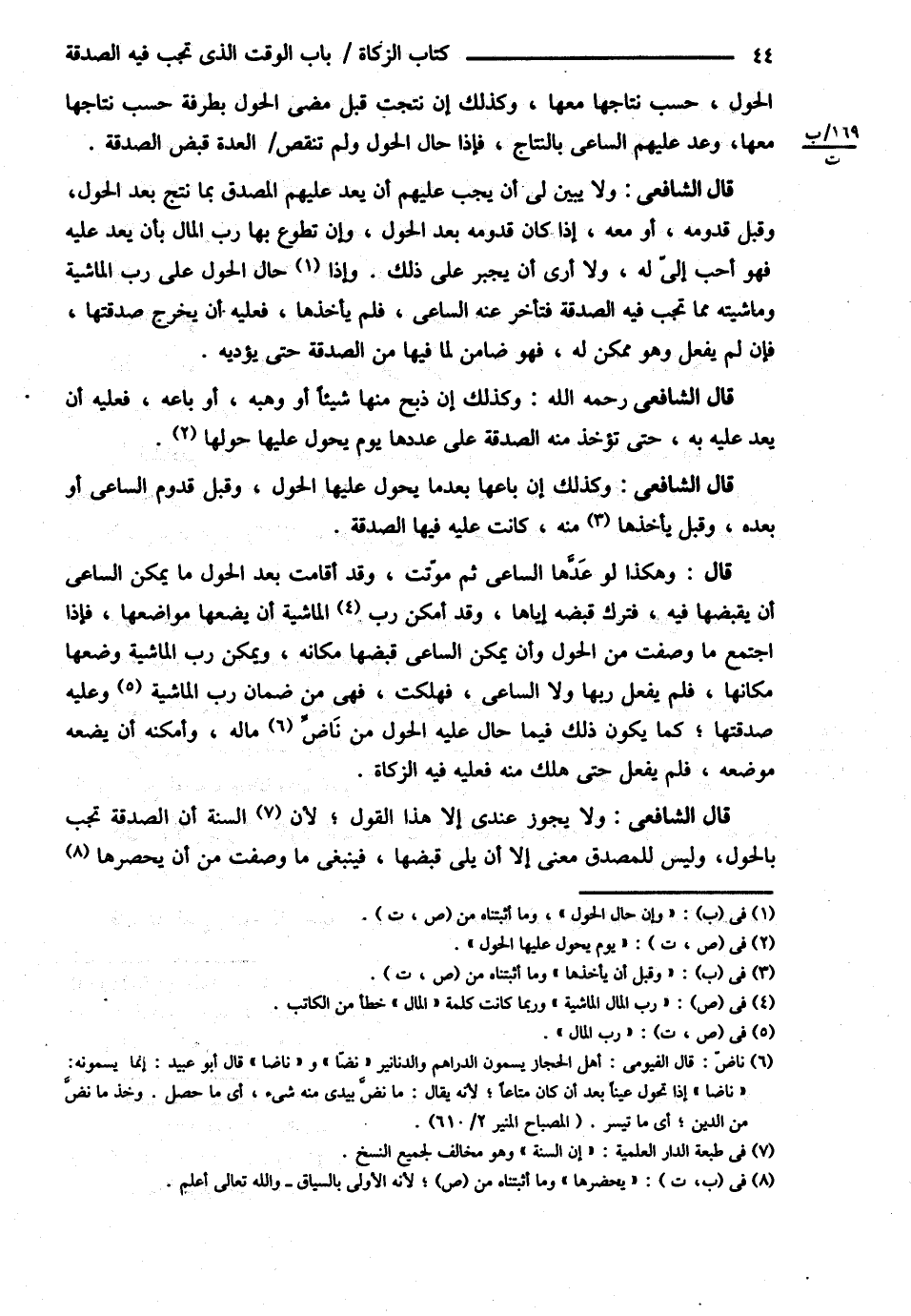 قَالَ الشَّافِعِيُّ : وَإِنْ كَانَتْ الْمَاشِيَةُ مِمَّا تَجِبُ فِيهِ الصَّدَقَةُ فَنَتَجَتْ قَبْلَ @
