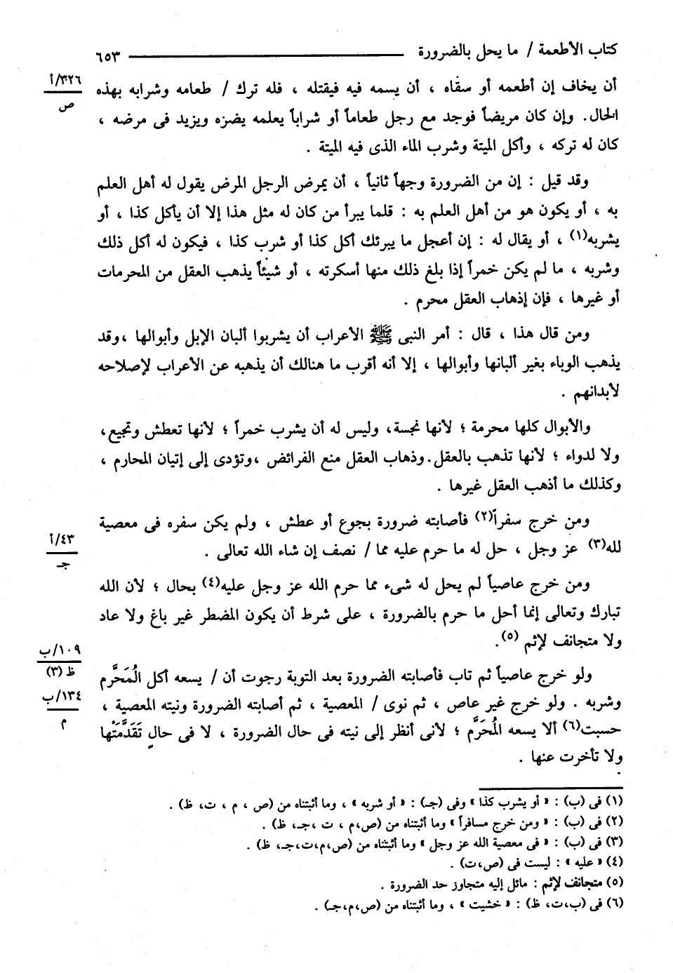 لَبَنٍ وَمَا أَشْبَهَهُ وَيُبْلِغُهُ الْجُوعُ مَا يَخَافُ مِنْهُ الْمَوْتَ أَوْ الْمَرَضَ وَإِنْ لَمْ يَخَفْ الْمَوْتَ أَوْ يُضْعِفُهُ وَيَضُرُّهُ أَوْ يَعْتَلُّ أَوْ يَكُونُ مَاشِيًا فَيَضْعُفُ عَنْ بُلُوغِ حَيْثُ يُرِيدُ أَوْ رَاكِبًا فَيَضْعُفُ عَنْ رُكُوبِ دَابَّتِهِ , أَوْ مَا فِي هَذَا الْمَعْنَى مِنْ الضَّرَرِ الْبَيِّنِ , فَأَيُّ هَذَا نَالَهُ فَلَهُ أَنْ [ يَأْكُلَ مِنْ الْمُحَرَّمِ ] . وَكَذَلِكَ يَشْرَبُ مِنْ الْمُحَرَّمِ غَيْرَ الْمُسْكِرِ , مِثْلَ الْمَاءِ تَقَعُ فِيهِ الْمَيْتَةُ وَمَا أَشْبَهَهُ . وَأَحَبُّ إلَيَّ أَنْ يَكُونَ آكِلُهُ إنْ أُكِلَ وَشَارِبُهُ إنْ شُرِبَ أَوْ جَمْعُهُمَا فَعَلَى مَا يَقْطَعُ عَنْهُ الْخَوْفَ وَيَبْلُغُ بِهِ بَعْضَ الْقُوَّةِ وَلاَ يُبَيِّنُ أَنْ يَحْرُمَ عَلَيْهِ أَنْ يَشْبَعَ وَيُرْوَى , وَإِنْ أَجْزَأَهُ دُونَهُ , لِأَنَّ التَّحْرِيمَ قَدْ زَالَ عَنْهُ بِالضَّرُورَةِ . وَإِذَا بَلَغَ الشِّبَعَ وَالرِّيَّ فَلَيْسَ لَهُ مُجَاوَزَتُهُ , لِأَنَّ مُجَاوَزَتَهُ حِينَئِذٍ إلَى الضَّرَرِ أَقْرَبُ مِنْهَا إلَى النَّفْعِ . وَمَنْ بَلَغَ إلَى الشِّبَعِ فَقَدْ خَرَجَ فِي بُلُوغِهِ مِنْ حَدِّ الضَّرُورَةِ وَكَذَلِكَ الرِّيُّ . وَلاَ بَأْسَ أَنْ يَتَزَوَّدَ مَعَهُ مِنْ الْمَيْتَةِ مَا اُضْطُرَّ إلَيْهِ . فَإِذَا وَجَدَ الْغِنَى عَنْهُ طَرَحَهُ . وَلَوْ تَزَوَّدَ مَعَهُ مَيْتَةً فَلَقِيَ مُضْطَرًّا أَرَادَ شِرَاءَهَا مِنْهُ , لَمْ يَحِلَّ لَهُ ثَمَنُهَا , إنَّمَا حَلَّ لَهُ مِنْهَا مَنْعُ الضَّرَرِ الْبَيِّنِ عَلَى بَدَنِهِ لاَ ثَمَنُهَا , وَلَوْ اُضْطُرَّ , وَوَجَدَ طَعَامًا , لَمْ يُؤْذَنْ لَهُ بِهِ , لَمْ يَكُنْ لَهُ أَكْلُ الطَّعَامِ , وَكَانَ لَهُ أَكْلُ الْمَيْتَةِ , وَلَوْ اُضْطُرَّ , وَمَعَهُ مَا يَشْتَرِي بِهِ مَا يَحِلُّ , فَإِنْ بَاعَهُ بِثَمَنِهِ فِي مَوْضِعِهِ أَوْ بِثَمَنِ مَا يَتَغَابَنُ النَّاسُ بِمِثْلِهِ , لَمْ يَكُنْ لَهُ أَكْلُ الْمَيْتَةِ , وَإِنْ لَمْ يَبِعْهُ إلَّا بِمَا لاَ يَتَغَابَنُ النَّاسُ بِمِثْلِهِ , كَانَ لَهُ أَكْلُ الْمَيْتَةِ , وَالِاخْتِيَارُ أَنْ يُغَالِيَ بِهِ وَيَدَعَ أَكْلَ الْمَيْتَةِ . وَلَيْسَ لَهُ , بِحَالٍ , أَنْ يُكَابِرَ رَجُلاً عَلَى طَعَامِهِ وَشَرَابِهِ وَهُوَ يَجِدُ مَا يُغْنِيهِ عَنْهُ مِنْ شَرَابٍ فِيهِ مَيْتَةٌ أَوْ مَيْتَةٌ , وَإِنْ اُضْطُرَّ فَلَمْ يَجِدْ مَيْتَةً وَلاَ شَرَابًا فِيهِ مَيْتَةٌ , وَمَعَ رَجُلٍ شَيْءٌ , كَانَ لَهُ أَنْ يُكَابِرَهُ , وَعَلَى الرَّجُلِ أَنْ يُعْطِيَهُ . وَإِذَا كَابَرَهُ , أَعْطَاهُ ثَمَنَهُ وَافِيًا , فَإِنْ كَانَ إذَا أَخَذَ شَيْئًا خَافَ مَالِكُ الْمَالِ عَلَى نَفْسِهِ , لَمْ يَكُنْ لَهُ مُكَابَرَتُهُ . وَإِنْ اُضْطُرَّ وَهُوَ مُحْرِمٌ إلَى صَيْدٍ أَوْ مَيْتَةٍ , أَكَلَ الْمَيْتَةَ وَتَرَكَ الصَّيْدَ , فَإِنْ أَكَلَ الصَّيْدَ فَدَاهُ , إنْ كَانَ هُوَ الَّذِي قَتَلَهُ . وَإِنْ اُضْطُرَّ فَوَجَدَ مَنْ يُطْعِمُهُ أَوْ يُسْقِيهِ , فَلَيْسَ لَهُ أَنْ يَمْتَنِعَ مِنْ أَنْ يَأْكُلَ أَوْ يَشْرَبَ . وَإِذَا وَجَدَ فَقَدْ ذَهَبَتْ عَنْهُ الضَّرُورَةُ إلَّا فِي حَالٍ وَاحِدَةٍ ,@