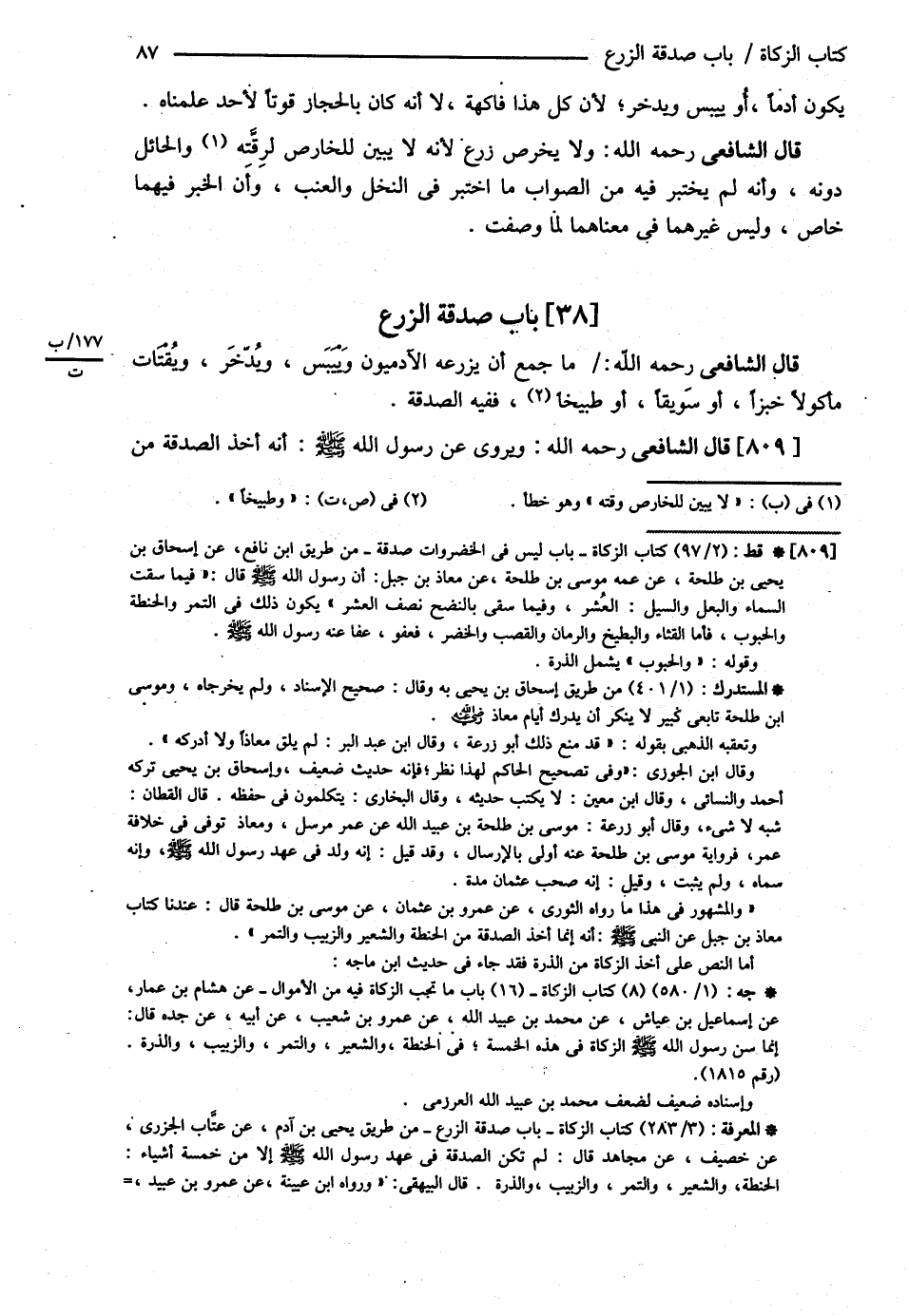 قَالَ الشَّافِعِيُّ : وَلاَ يُؤْخَذُ مِنْ شَيْءٍ مِنْ الشَّجَرِ غَيْرُ النَّخْلِ , وَالْعِنَبِ فَإِنَّ رَسُولَ اللَّهِ - صلى الله عليه وسلم - أَخَذَ الصَّدَقَةَ مِنْهُمَا فَكَانَا قُوتًا , وَكَذَلِكَ لاَ يُؤْخَذُ مِنْ الْكُرْسُفِ وَلاَ أَعْلَمُهَا تَجِبُ فِي الزَّيْتُونِ ; لِأَنَّهُ أُدُمٌ لاَ مَأْكُولَ بِنَفْسِهِ وَسَوَاءٌ الْجَوْزُ فِيهَا , وَاللَّوْزُ وَغَيْرُهُ مِمَّا@
