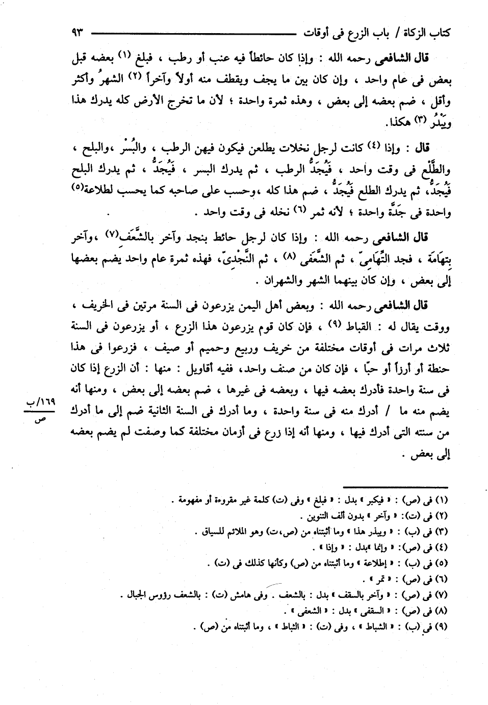 قَالَ الشَّافِعِيُّ : رحمه الله تعالى إذَا بَلَغَ مَا أَخْرَجَتْ الْأَرْضُ مَا يَكُونُ فِيهِ الزَّكَاةُ أُخِذَتْ صَدَقَتُهُ وَلَمْ يُنْتَظَرْ بِهَا حَوْلٌ لِقَوْلِ اللَّهِ عَزَّ وَجَلَّ : ? وَآتَوْا حَقَّهُ يَوْمَ حَصَادِهِ } وَلَمْ يَجْعَلْ لَهُ وَقْتًا إلَّا الْحَصَادَ وَاحْتَمَلَ قَوْلُ اللَّهِ عَزَّ وَجَلَّ : ? يَوْمَ حَصَادِهِ } إذَا صَلَحَ بَعْدَ الْحَصَادِ وَاحْتَمَلَ يَوْمَ يُحْصَدُ , وَإِنْ لَمْ يَصْلُحْ , فَدَلَّتْ سُنَّةُ رَسُولِ اللَّهِ - صلى الله عليه وسلم - عَلَى أَنْ تُؤْخَذَ بَعْدَمَا يَجِفُّ لاَ يَوْمَ يُحْصَدُ النَّخْلُ , وَالْعِنَبُ , وَالْأَخْذُ مِنْهُمَا زَبِيبًا وَتَمْرًا فَكَانَ كَذَلِكَ كُلُّ مَا يَصْلُحُ بِجُفُوفٍ وَدَرْسٍ مِمَّا فِيهِ الزَّكَاةُ مِمَّا أَخْرَجَتْ الْأَرْضُ , وَهَكَذَا زَكَاةُ مَا أُخْرِجَ مِنْ الْأَرْضِ مِنْ مَعْدِنٍ لاَ يُؤْخَذُ حَتَّى يَصْلُحَ فَيَصِيرُ ذَهَبًا , أَوْ فِضَّةً وَيُؤْخَذُ يَوْمَ يَصْلُحُ