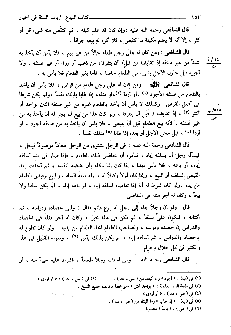قَالَ الشَّافِعِيُّ : وَمَنْ أَسْلَفَ رَجُلاً طَعَامًا فَشَرَطَ عَلَيْهِ خَيْرًا مِنْهُ أَوْ@
