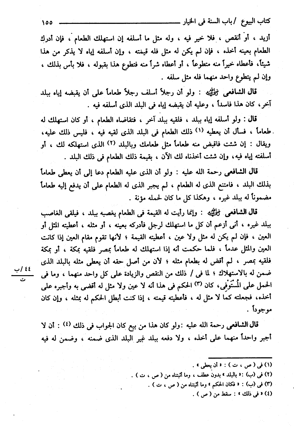 قَالَ الشَّافِعِيُّ : وَلَوْ كَانَ هَذَا مِنْ بَيْعٍ كَانَ الْجَوَابُ فِي ذَلِكَ أَنْ لاَ أُجْبِرَ وَاحِدًا مِنْهُمَا عَلَى أَخْذِهِ وَلاَ دَفْعِهِ بِبَلَدٍ غَيْرِ الْبَلَدِ الَّذِي ضَمِنَهُ وَضَمِنَ لَهُ فِيهِ@