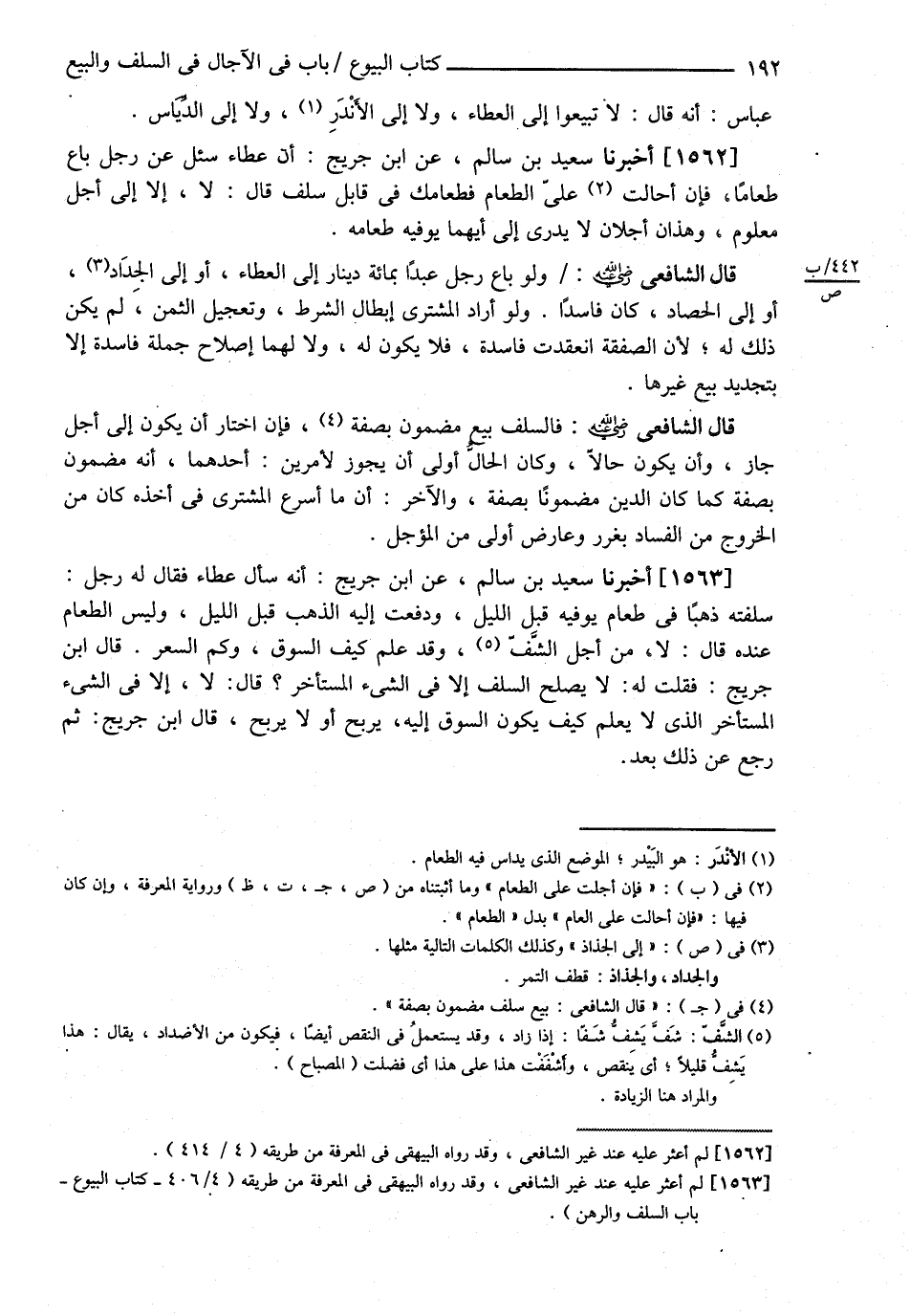 عَبَّاسٍ أَنَّهُ قَالَ . لاَ تَبِيعُوا إلَى الْعَطَاءِ , وَلاَ إلَى الْأَنْدَرِ , وَلاَ إلَى الدِّيَاسِ ( أَخْبَرَنَا ) سَعِيدُ بْنُ سَالِمٍ عَنْ ابْنِ جُرَيْجٍ أَنَّ عَطَاءً سُئِلَ عَنْ رَجُلٍ بَاعَ طَعَامًا فَإِنْ أَجَّلْت عَلَى الطَّعَامِ فَطَعَامُك فِي قَابِلٍ سَلَفٌ قَالَ لاَ إلَّا إلَى أَجَلٍ مَعْلُومٍ وَهَذَانِ أَجَلاَنِ لاَ يَدْرِي إلَى أَيِّهِمَا يُوَفِّيهِ طَعَامَهُ